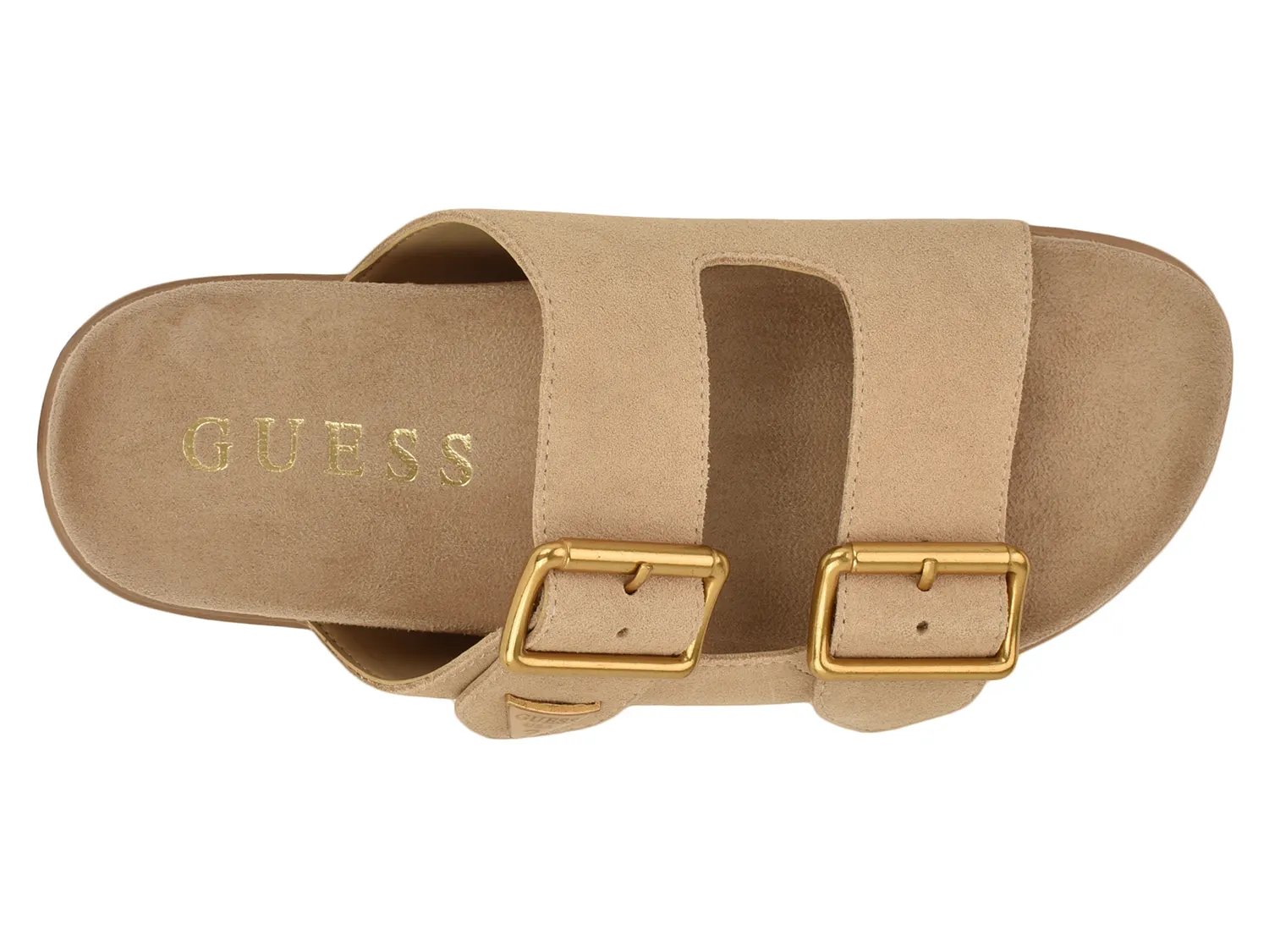 Дополните свой гардероб для теплой погоды сандалиями Fasten от Guess. Эти замшевые туфли с крупными ремешками с пряжками привлекают внимание, а формованная стелька обеспечивает поддержку стопы.