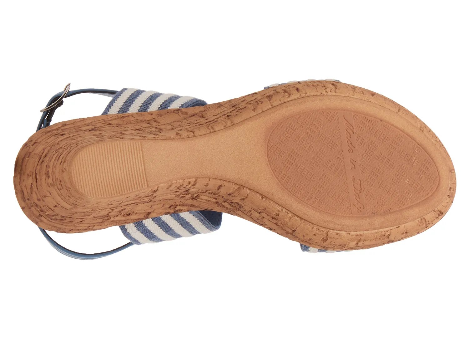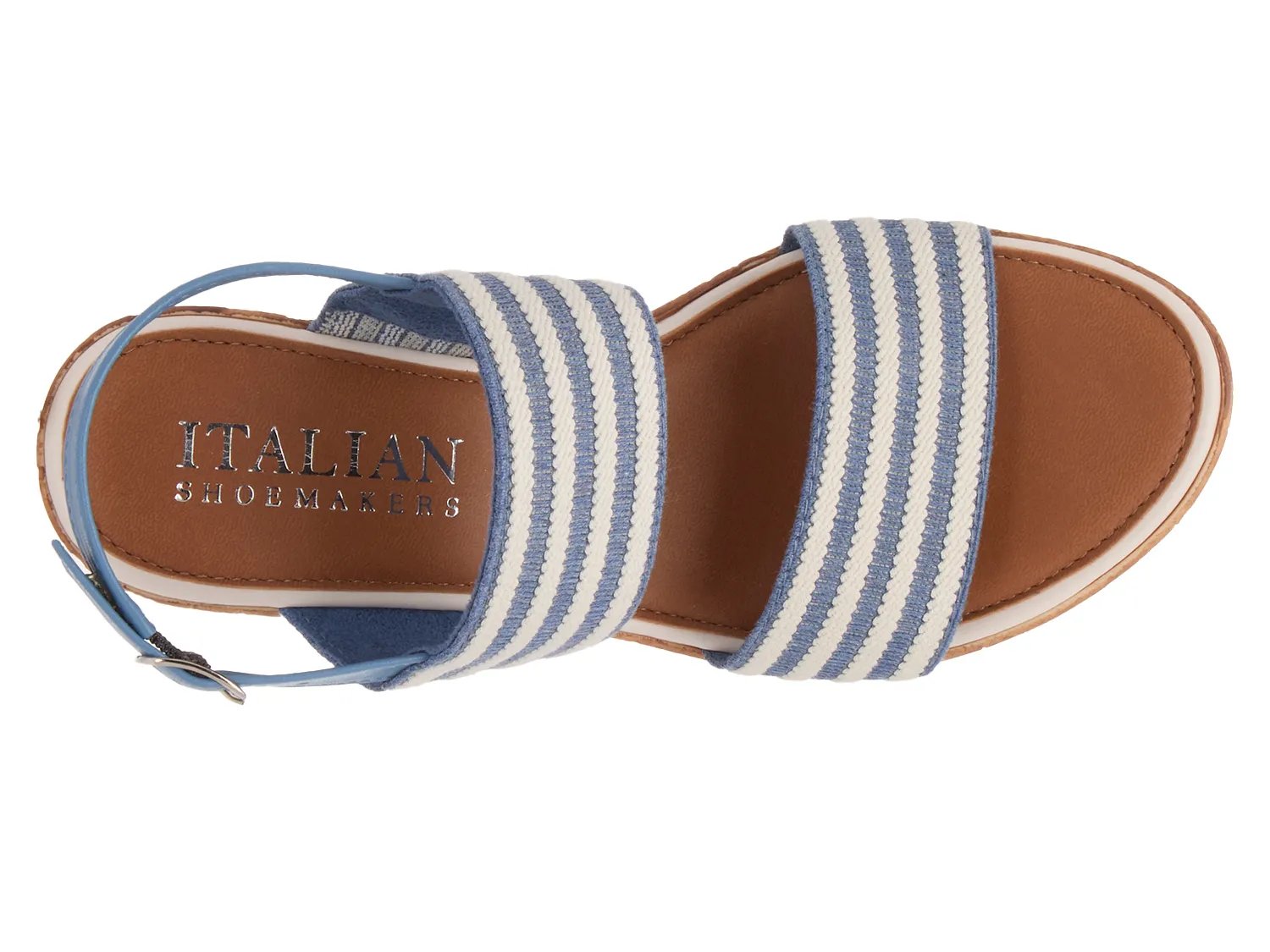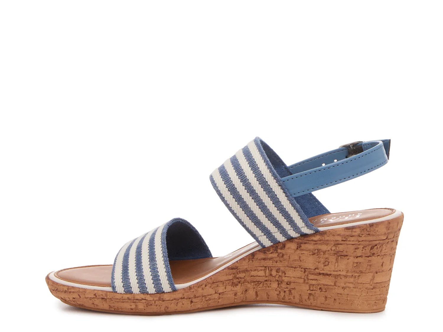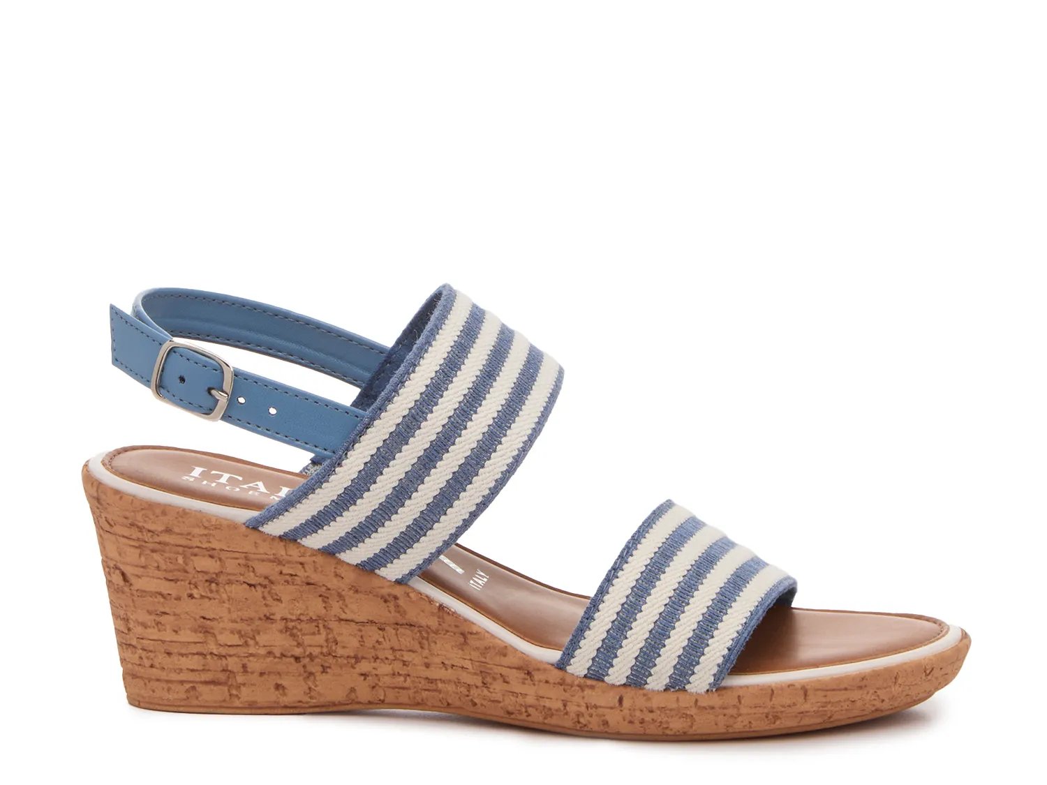 Продемонстрируйте классический образ для теплой погоды в босоножках Vienne на танкетке от итальянских производителей обуви. Эти босоножки с открытой пяткой имеют плетеный полосатый верх и пробковую танкетку для создания непринужденного образа.