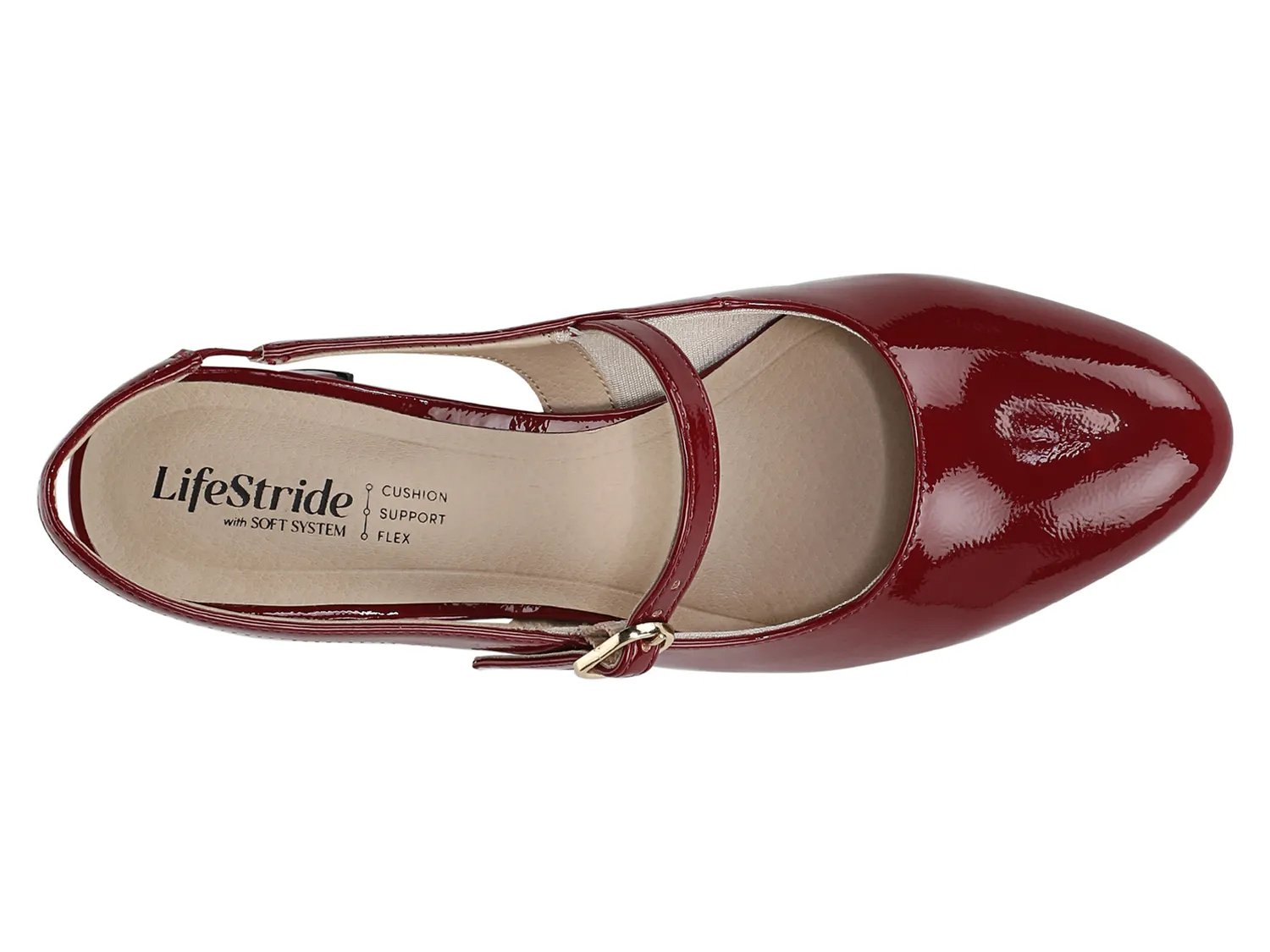 Сохраните классику в туфлях LifeStride Trust. Эти элегантные лакированные туфли с классической отделкой Мэри Джейн: ремешком на пятке и блочным каблуком создают настроение. Технология комфорта Soft System обеспечивает поддержку, комфорт и гибкость при каждом шаге.