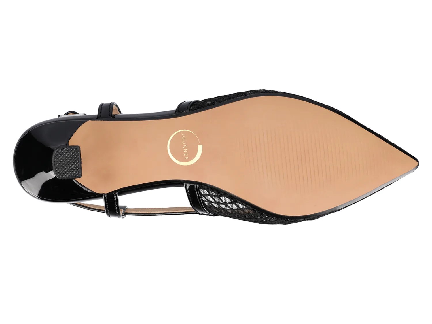 Добавьте нотку строгости в свой изысканный образ с туфлями Padma от Journee. Эти элегантные туфли с открытой пяткой имеют острый носок, модный каблук-рюмочку и акцент в виде двух пряжек. Сетчатый материал и сетчатая ткань сверху.
