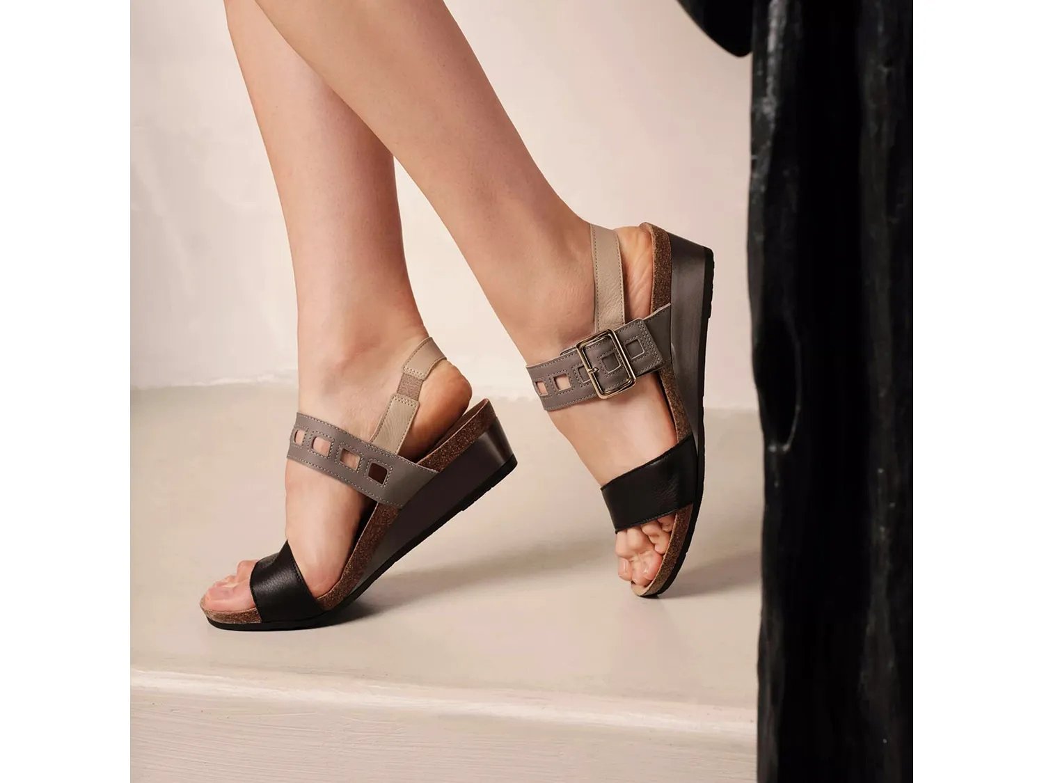 Сандалии Naot Dynasty Wedge Sandal, Black/Grey/Beige Leather