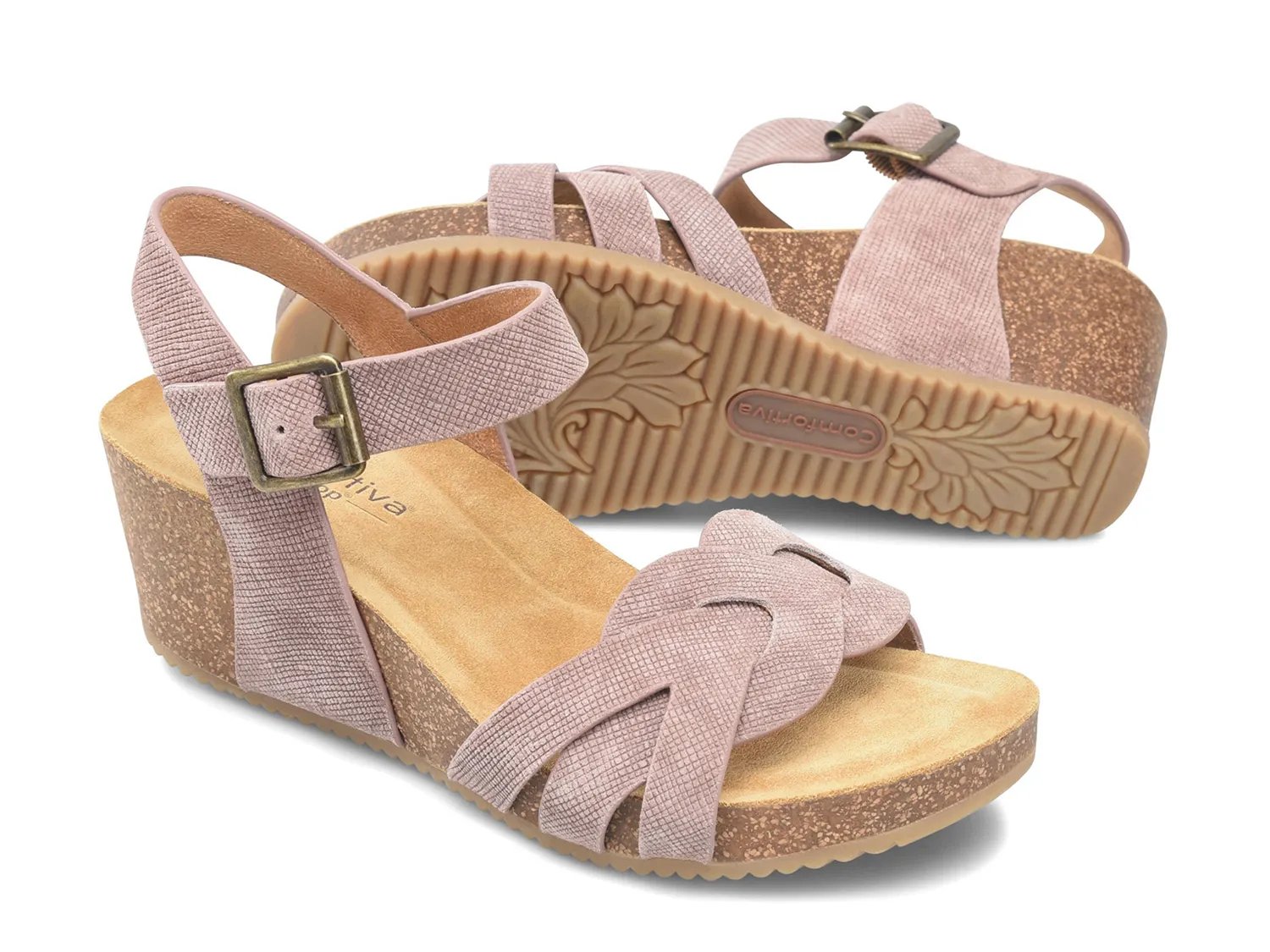 Босоножки Comfortiva Erena на танкетке идеально подойдут для теплой погоды. Пробковые детали создают образ в стиле бохо-шик, а стелька из пены с эффектом памяти смягчает шаги и обеспечивает комфорт.