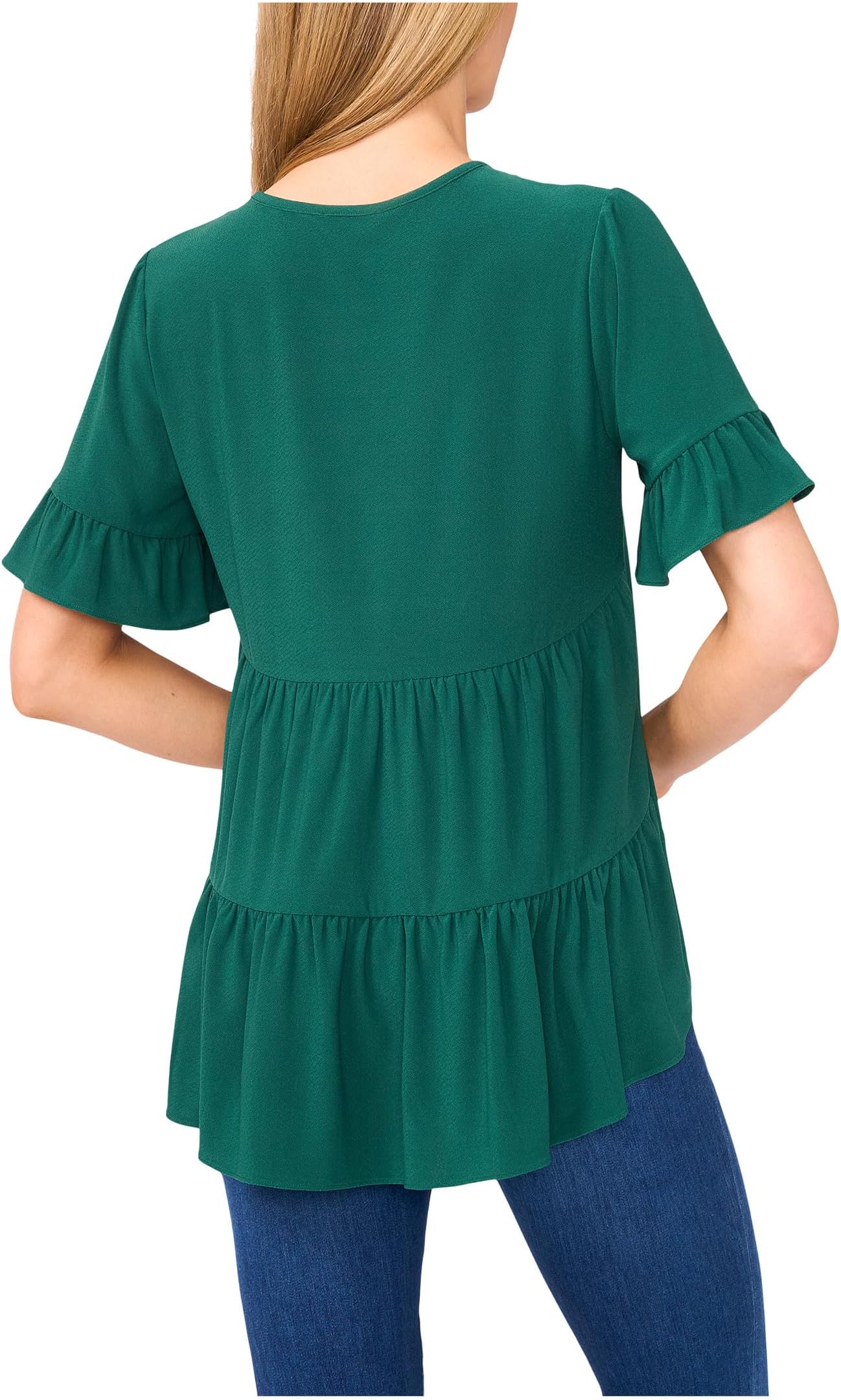 Топ CeCe Short Sleeve Ruffle Detail High Low Top, Alpine Green