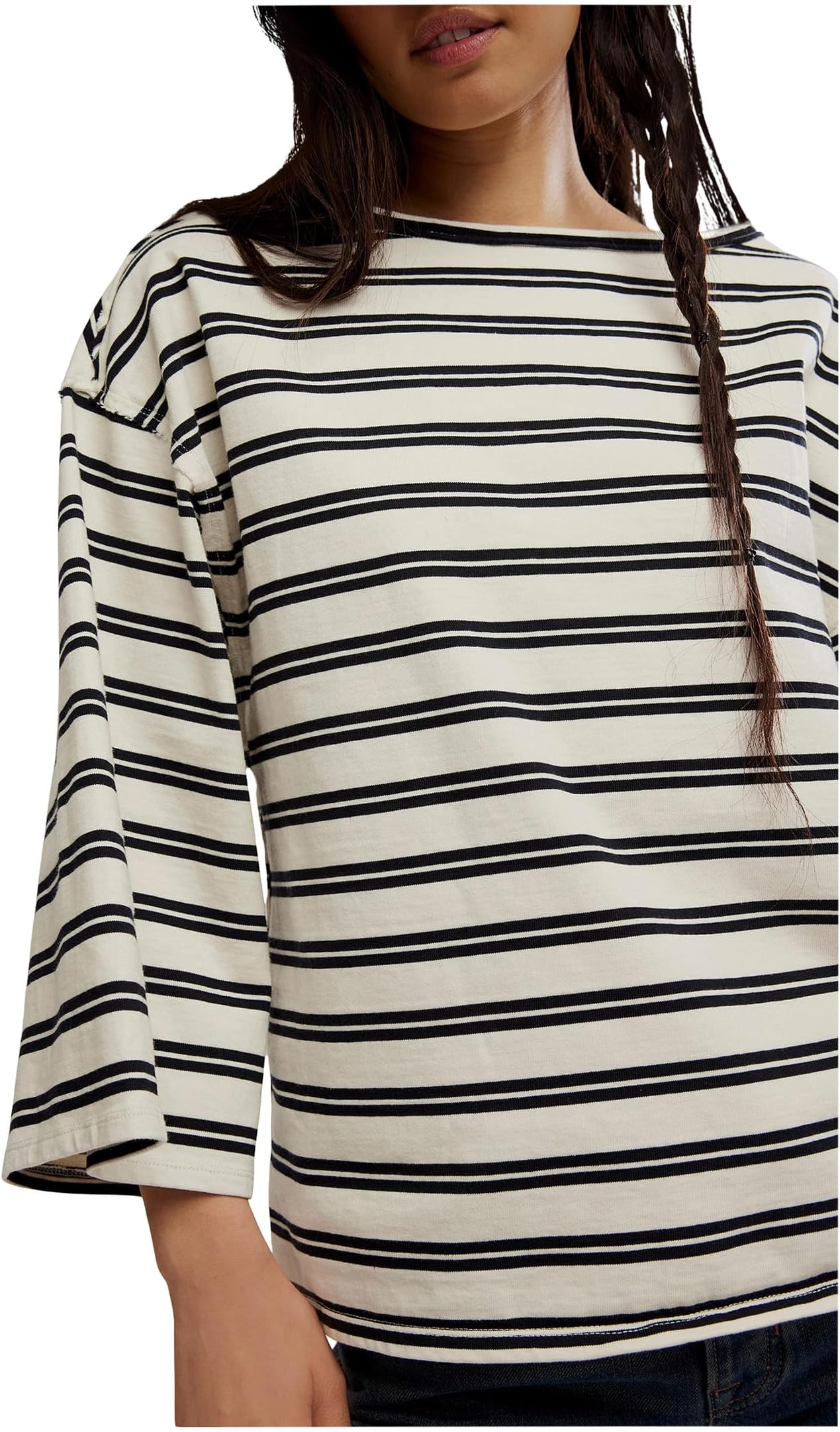 • Шик - это преуменьшение, если выбрать эту свободную футболку от Free People We The Free C'est La Vie Tee с очень широкими рукавами три четверти и классическим вырезом лодочкой для создания непринужденного элегантного образа. Почему мы ее любим: Этот эффектный силуэт выводит ваши повседневные образы на новый уровень.
