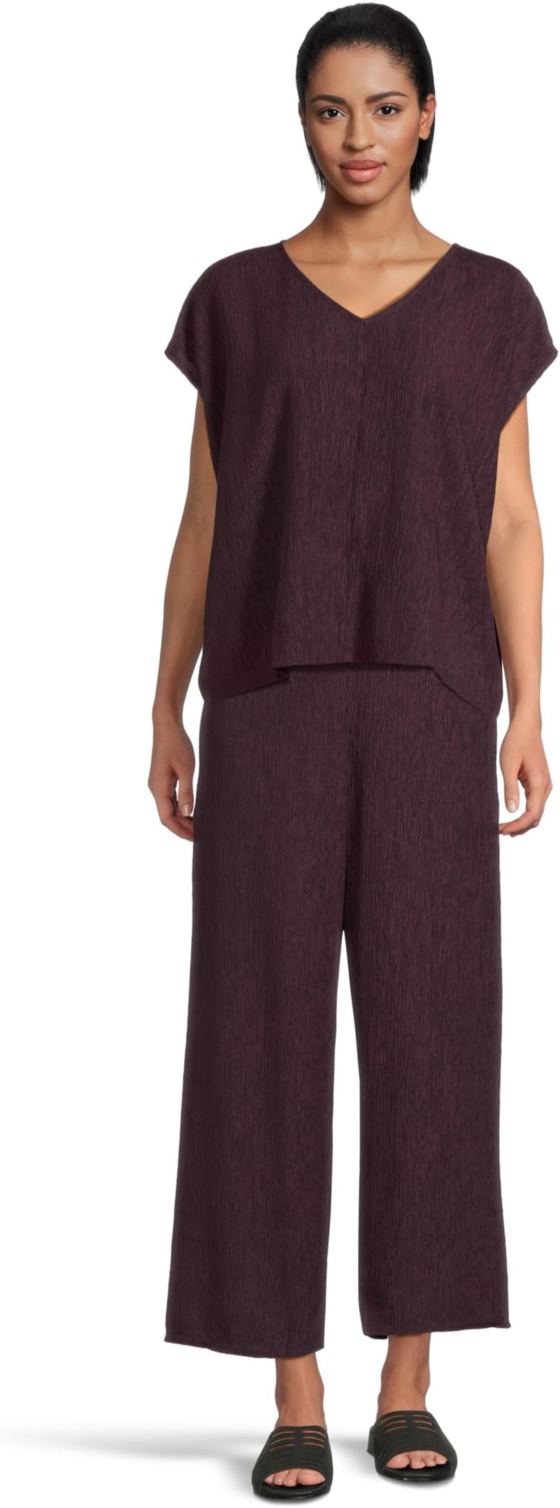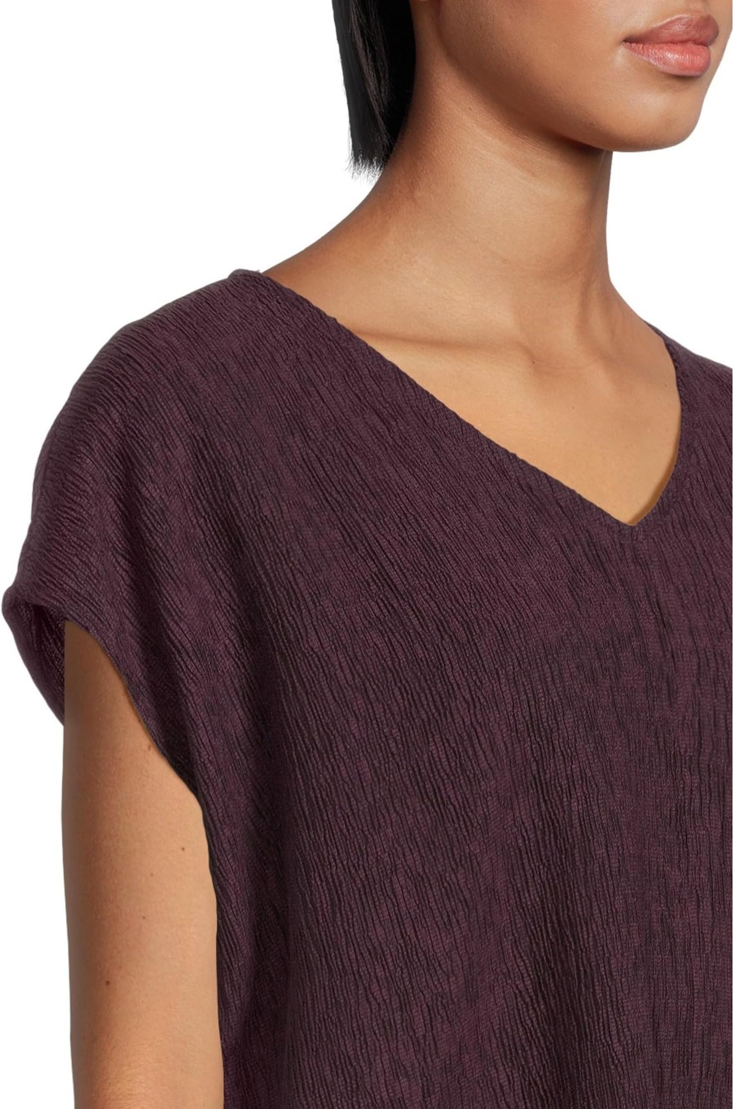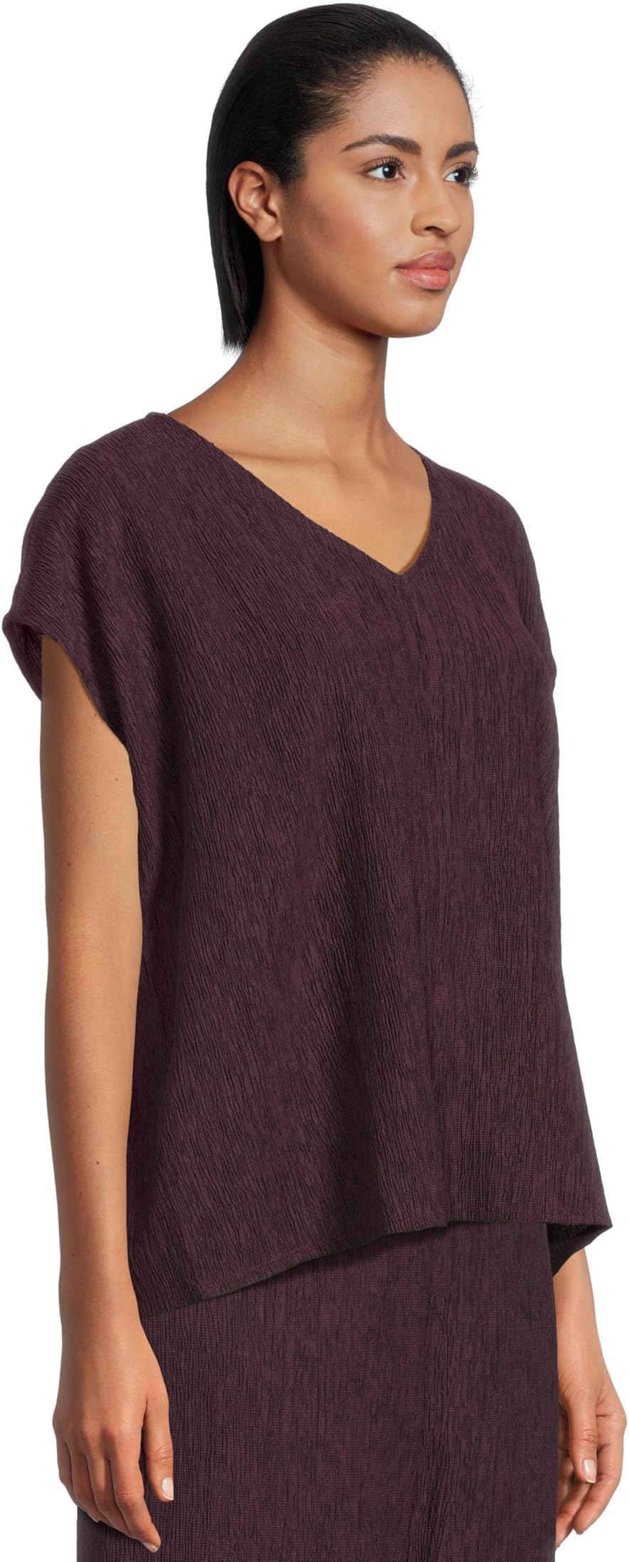 Топ Eileen Fisher Woven Plisse V-Neck Square Top, Blackberry