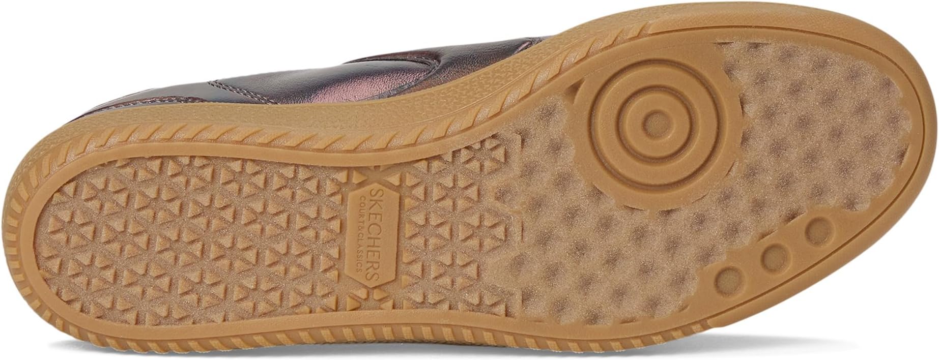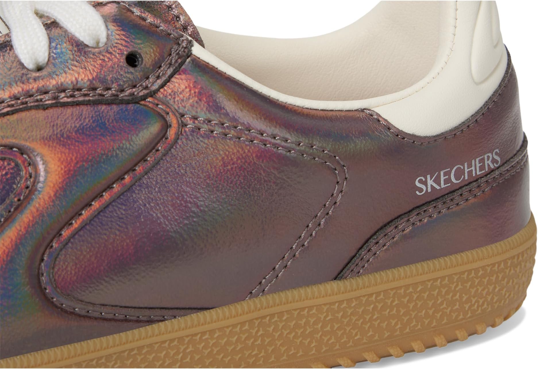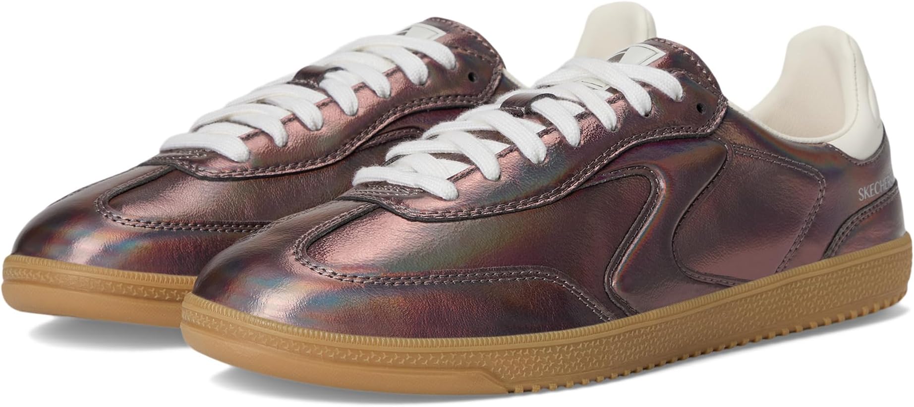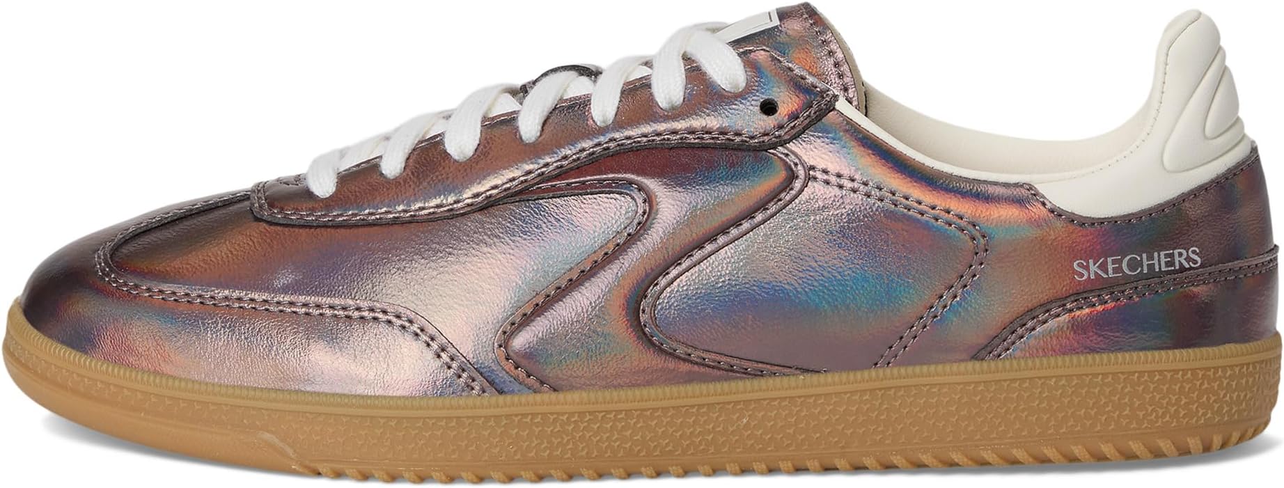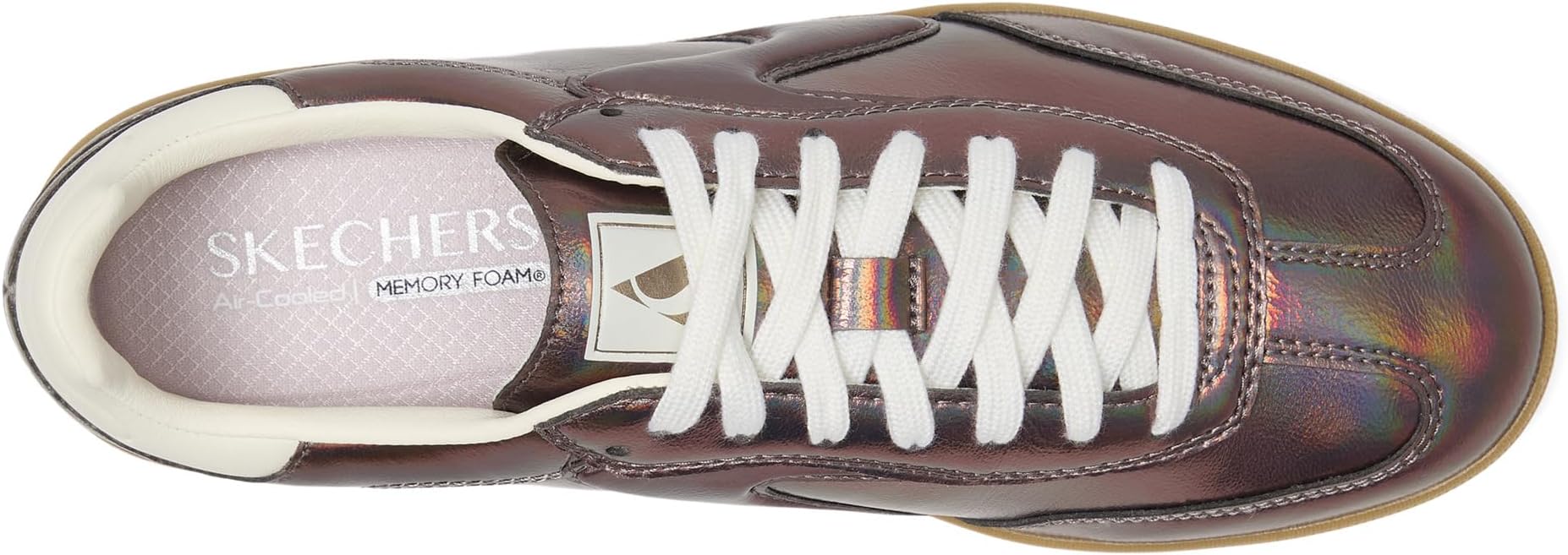 • SKECHERS Hotshot - True Iridescence - это кроссовки в спортивном стиле со шнуровкой, созданные для того, чтобы выделяться. Верх из синтетической металлизированной кожи Duraleather с переливающейся отделкой, элегантный силуэт, дополненный логотипом в четверть оборота, дополнен гибкой резиновой подошвой с цепким сцеплением для комфорта. Внутренняя стелька из пены с эффектом памяти Skechers Air-Cooled Memory Foam обеспечивает дышащую амортизацию и снижает давление при каждом шаге.