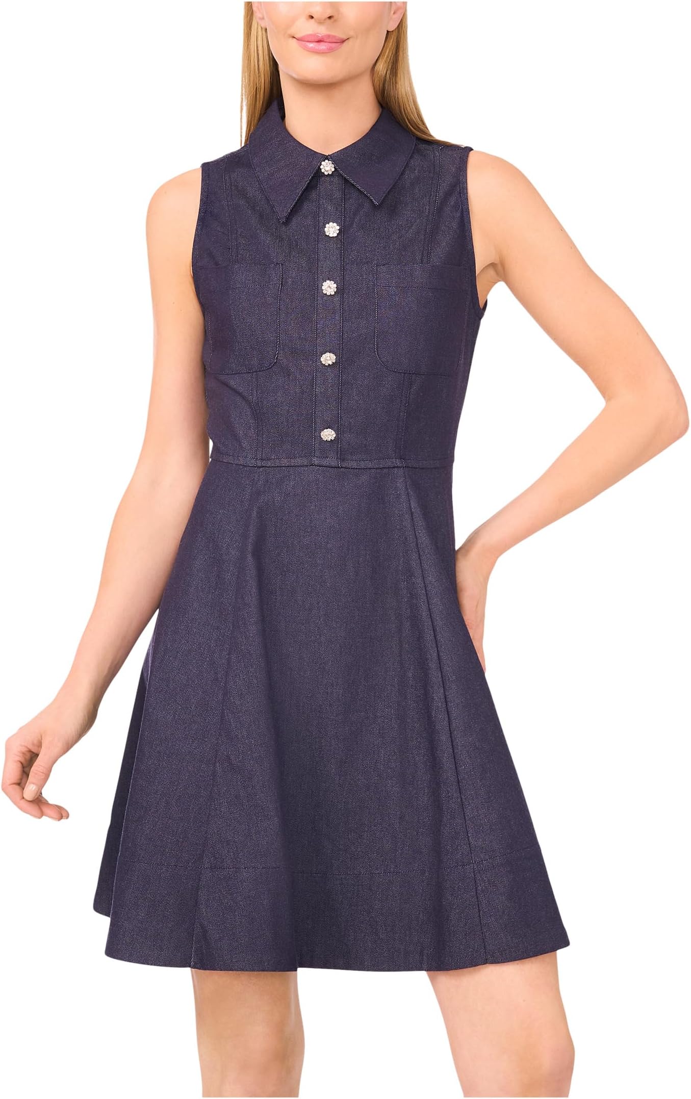 Платье CeCe Sleeveless Fit & Flare Collared Dress, Classic Navy