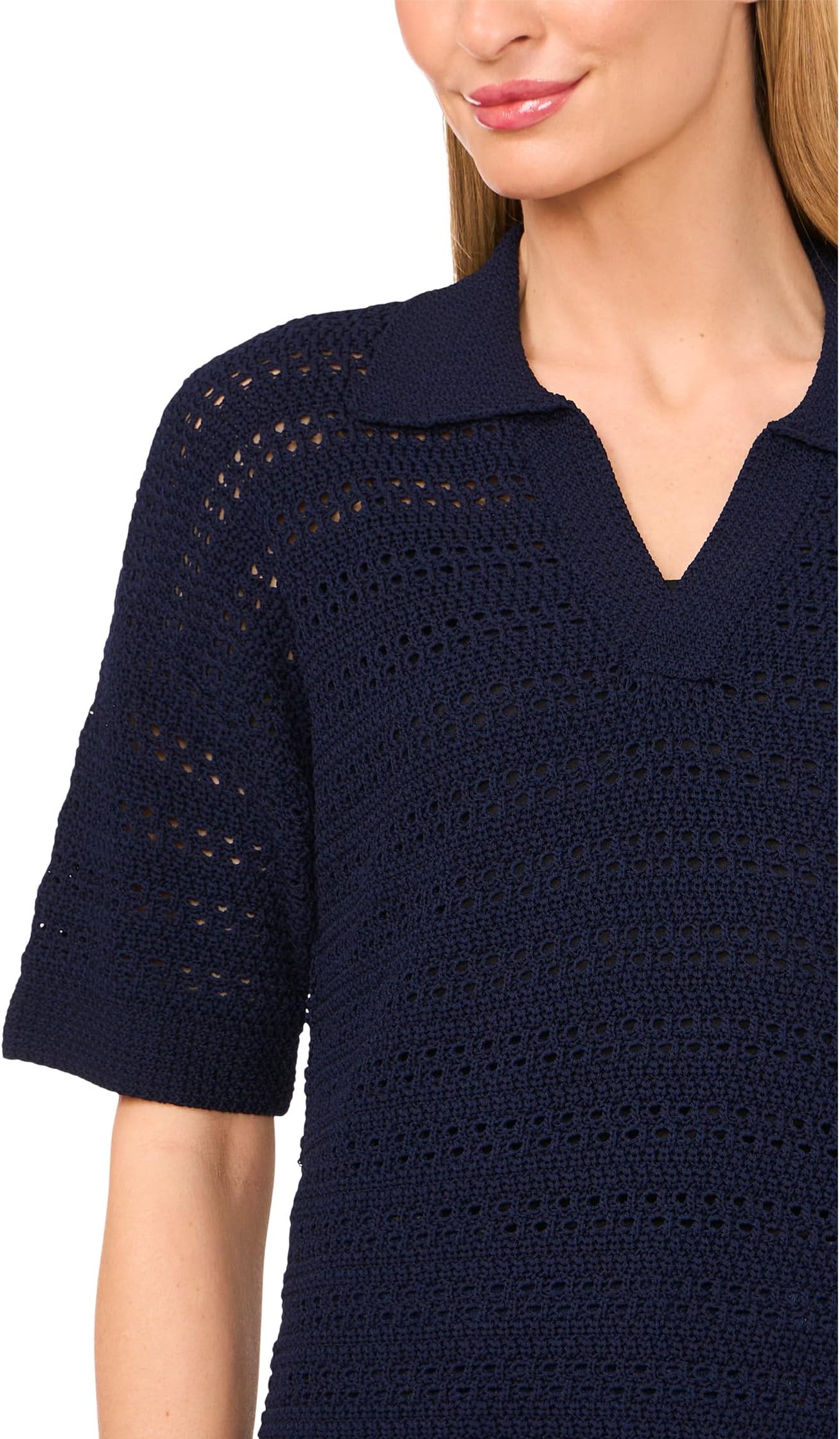 Свитер CeCe Open Knit Popover Polo Sweater, Classic Navy