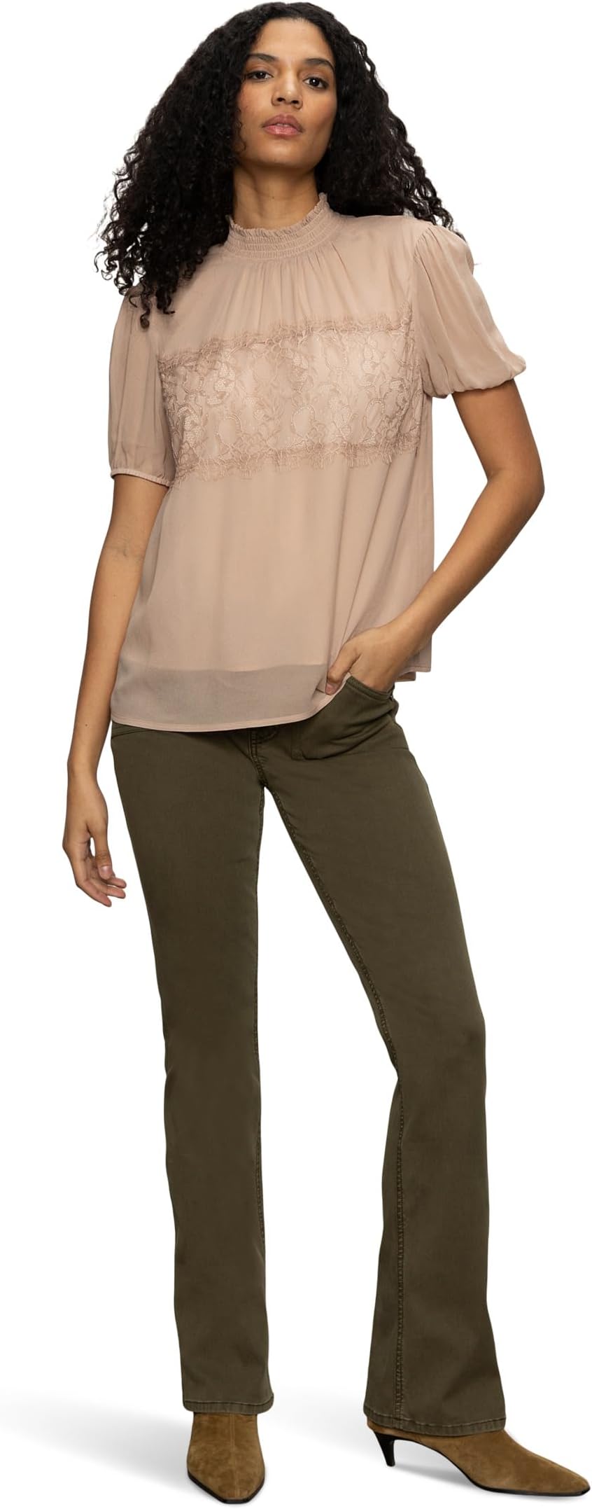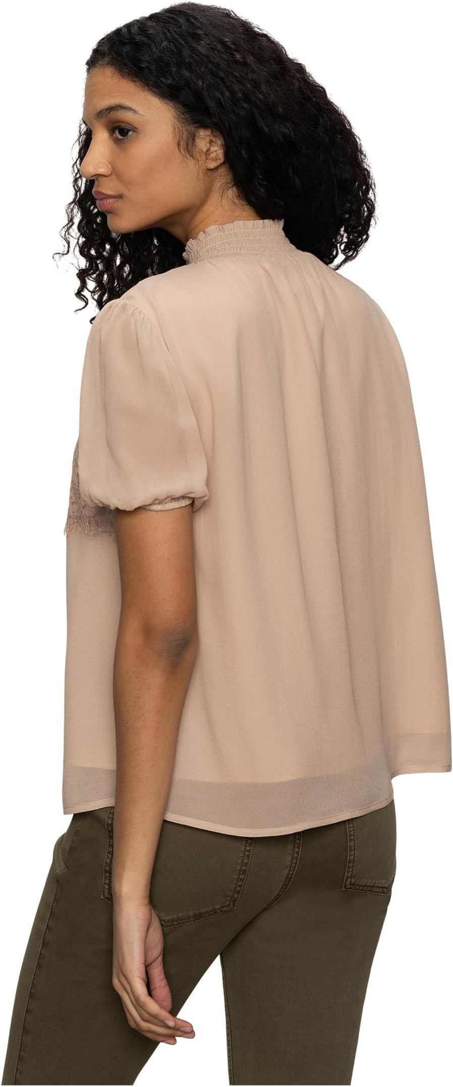 • Ощутите стиль и изысканность в кружевном топе Sanctuary Sweet Romance. Этот топ, который легко надевать, имеет оборку на воротнике-стойке, кружевную отделку спереди, короткие рукава-фонарики и стандартную длину.