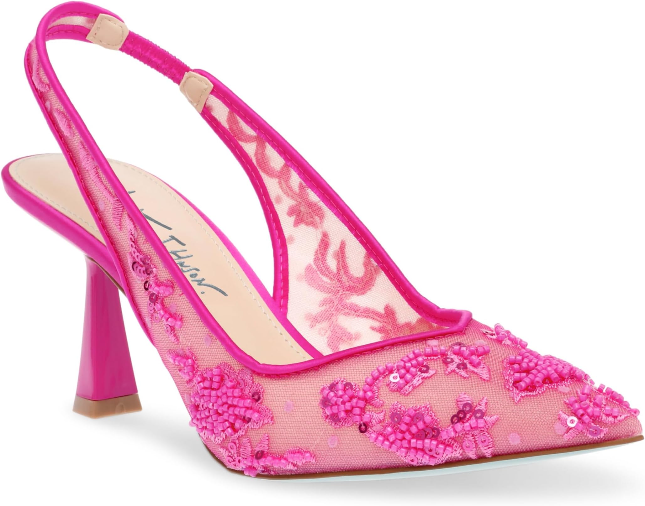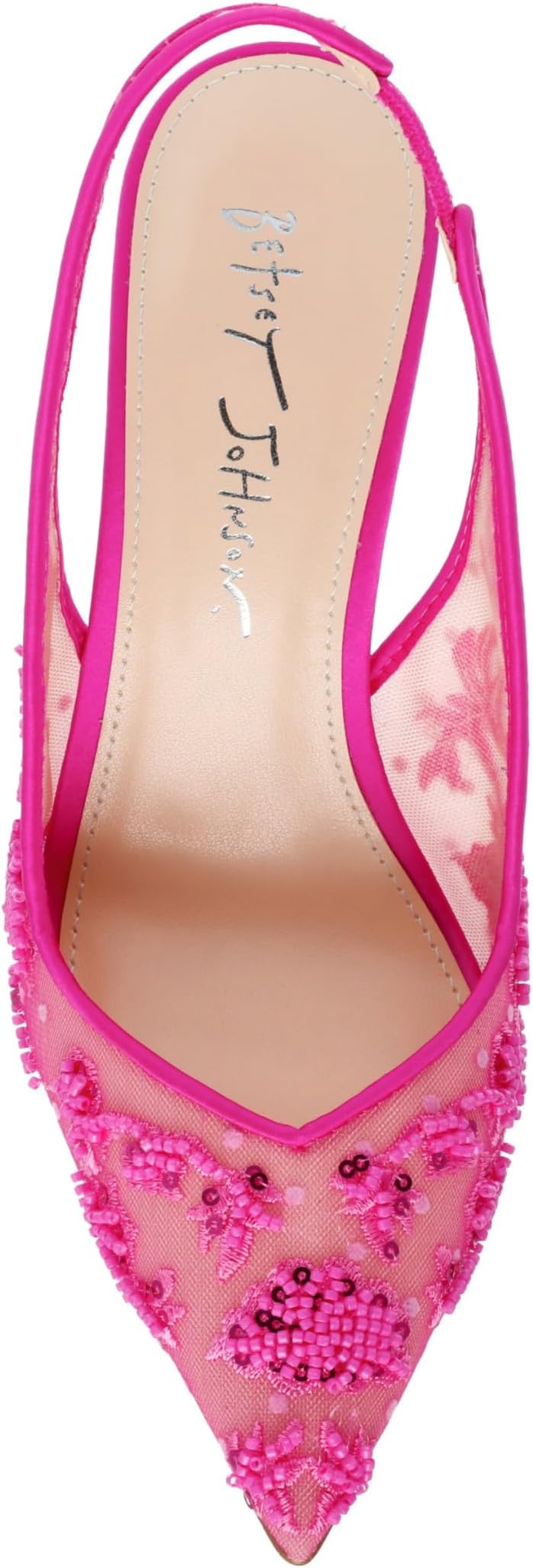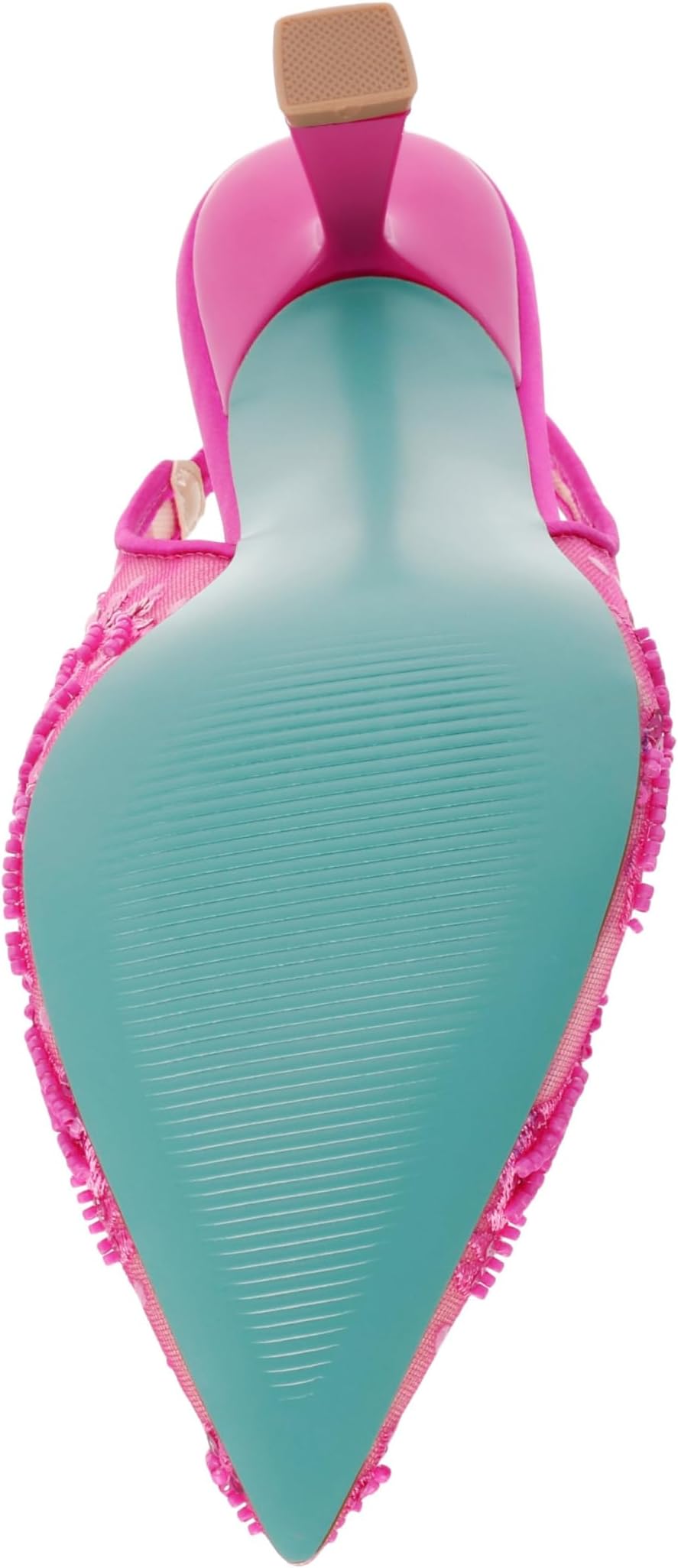 • Туфли-лодочки Blue от Betsey Johnson Nikki Pumps подчеркнут силуэт с открытой пяткой, классическим острым носком и украшены потрясающей вышивкой из бисера. Они добавят нотку гламура вашему вечернему образу. Они изготовлены из сетчатого верха, синтетической подкладки и мягкой стельки.