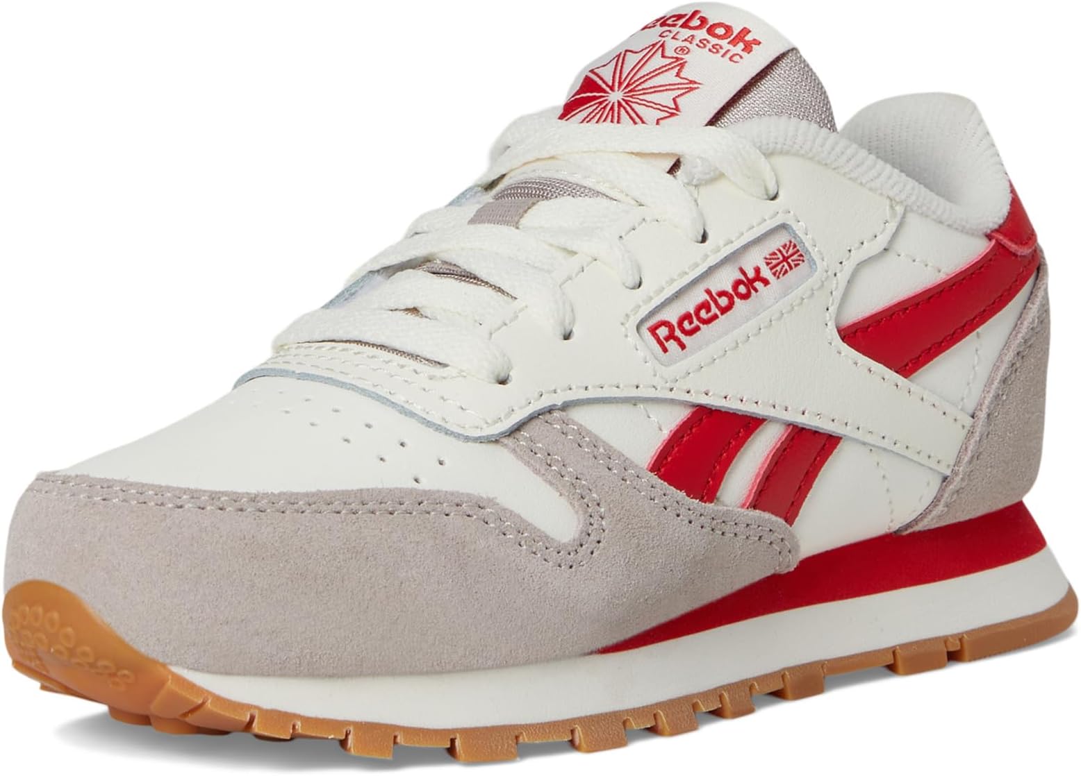 Кроссовки Reebok Kids Classic Leather, Hazy Grey/Chalk/Vector Red