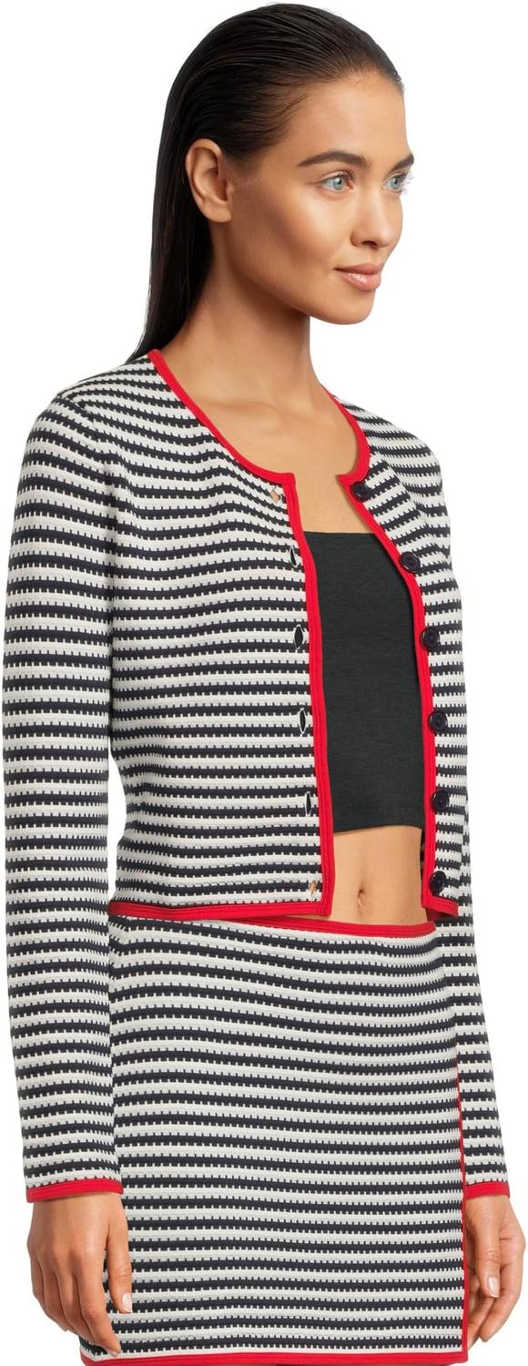 • Приготовьтесь к потоку комплиментов, создавая свой образ в полосатом кардигане Beach Riot Calla укороченного силуэта. Кардиган застегивается на пуговицы, имеет круглый вырез горловины и длинные рукава с контрастной окантовкой по всей поверхности, что придает ему эффектный вид.