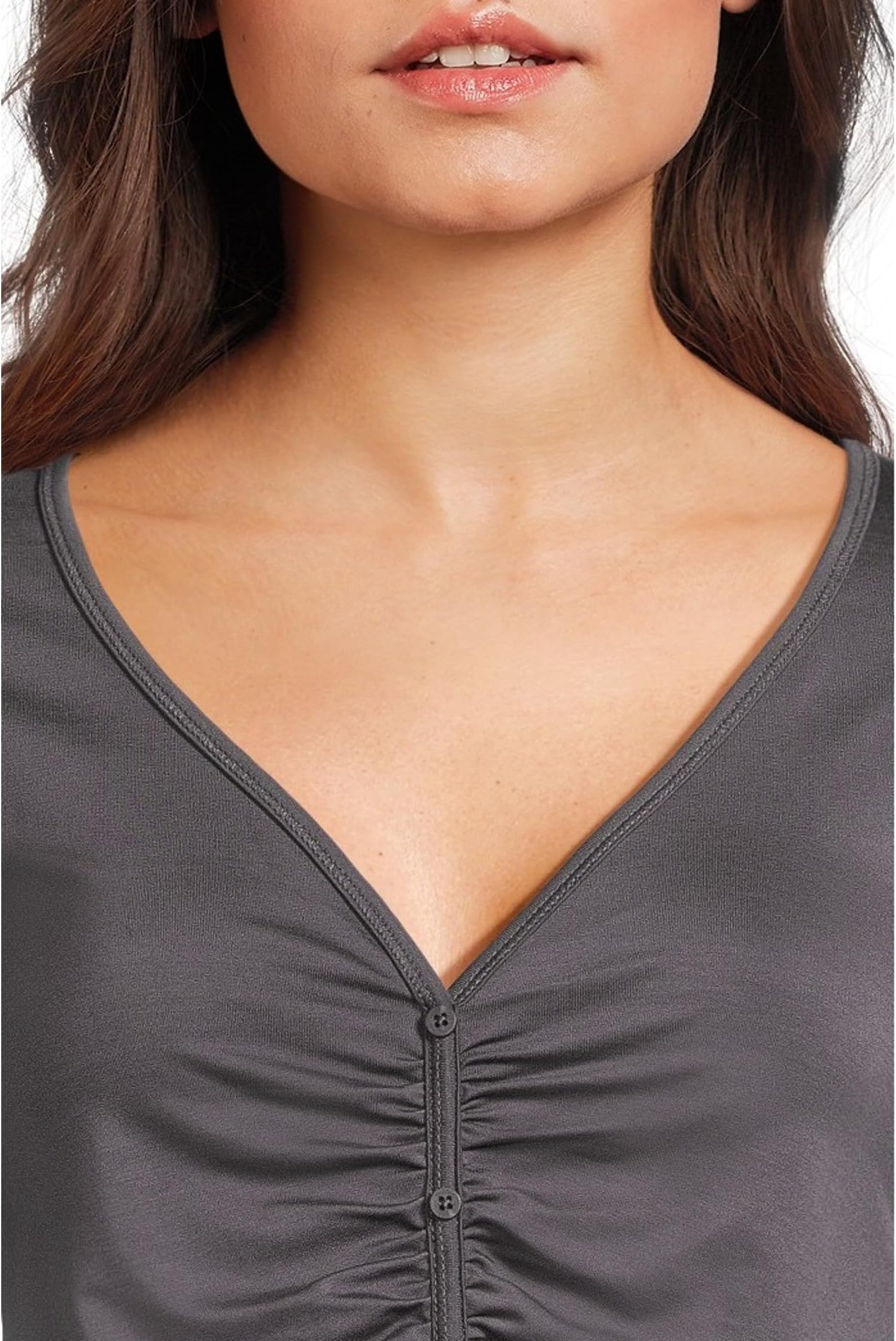 • Футболка Splendid Yasmina Ruched Tee прекрасно сочетает в себе классическую элегантность и современный комфорт. Верхняя часть свободная, надевается сверху, имеет короткие рукава с круглыми манжетами и сборку по центру переда, образующую V-образный вырез. Застежка по центру переда выполнена из декоративных, нефункциональных пуговиц.