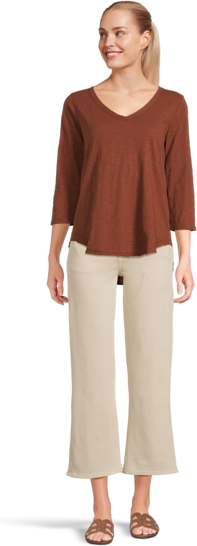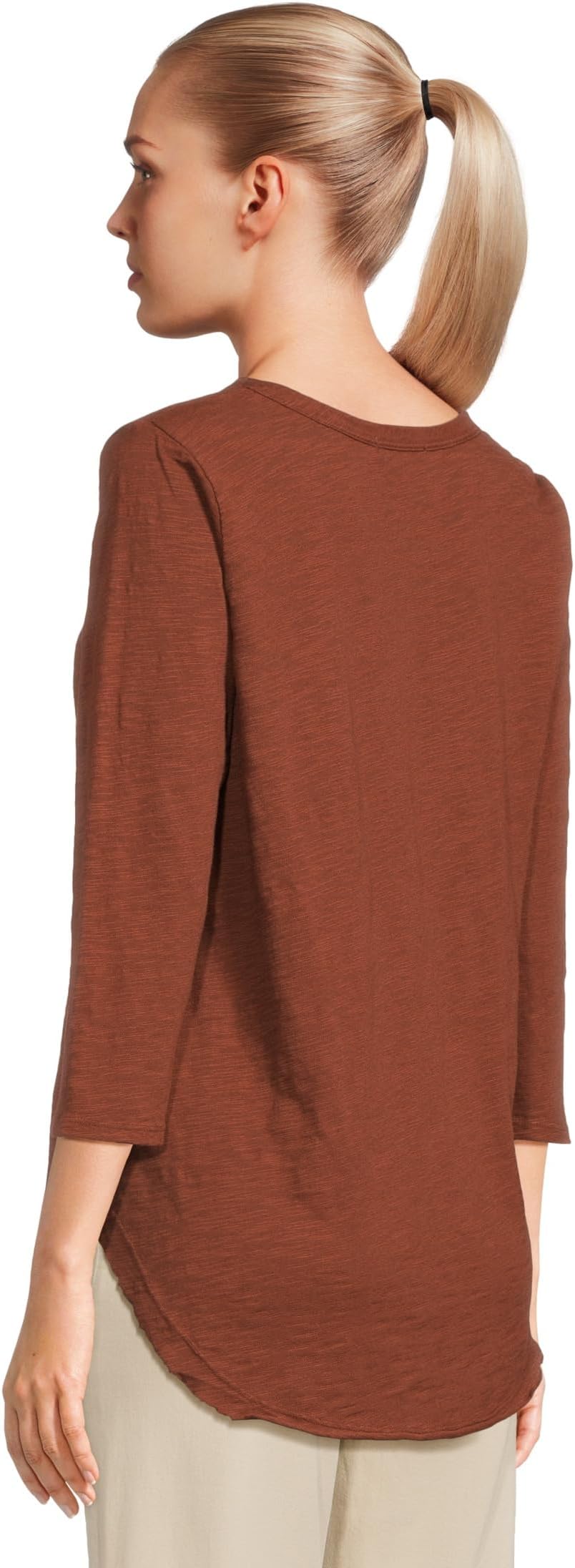 Футболка Mod-o-doc 3/4 Sleeve V-Neck Tee with Curved Hem, Maple SyrupSee Less