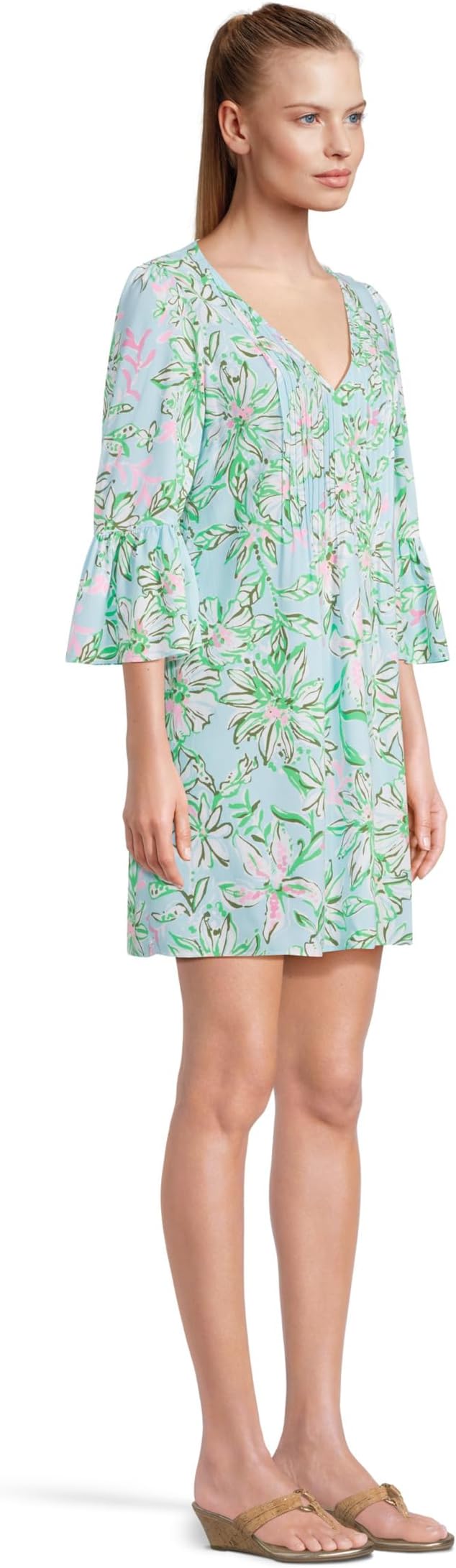 • В платье-тунике Lilly Pulitzer Danika с рукавами 3/4 вас ждет непринужденная элегантность. Это платье облегает ваши изгибы, создавая элегантный, безупречный образ. Это платье свободного кроя с V-образным вырезом с очаровательными защипами, рукавами длиной три четверти для прикрытия и игривым оборчатым подолом.