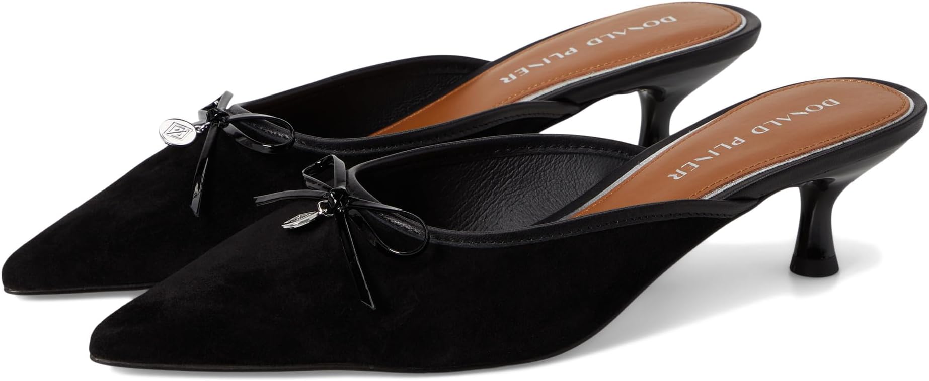 • Откройте для себя Donald Pliner Soel, где вневременной стиль сочетается с современным шармом. Эти остроносые туфли из мягкой черной замши украшены изысканным бантом и элегантной тональной отделкой, которая гармонично сочетает классический шарм с современным стилем. Мягкий кожаный верх, подкладка и стелька создают ощущение роскоши при каждом шаге, а скульптурный каблук-рюмочка обеспечивает привлекательный подъем без ущерба для комфорта. Удобная посадка и подошва Toeflex обеспечивают гибкую поддержку для повседневной носки.