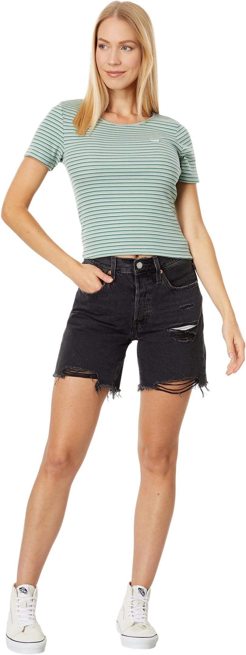 • Шорты Levi's 501 Mid Thigh Short покроя напоминают культовые джинсы, но с гораздо более коротким внутренним швом. Эти повседневные шорты с пятью карманами плотно облегают талию и выполнены из неэластичного денима.
