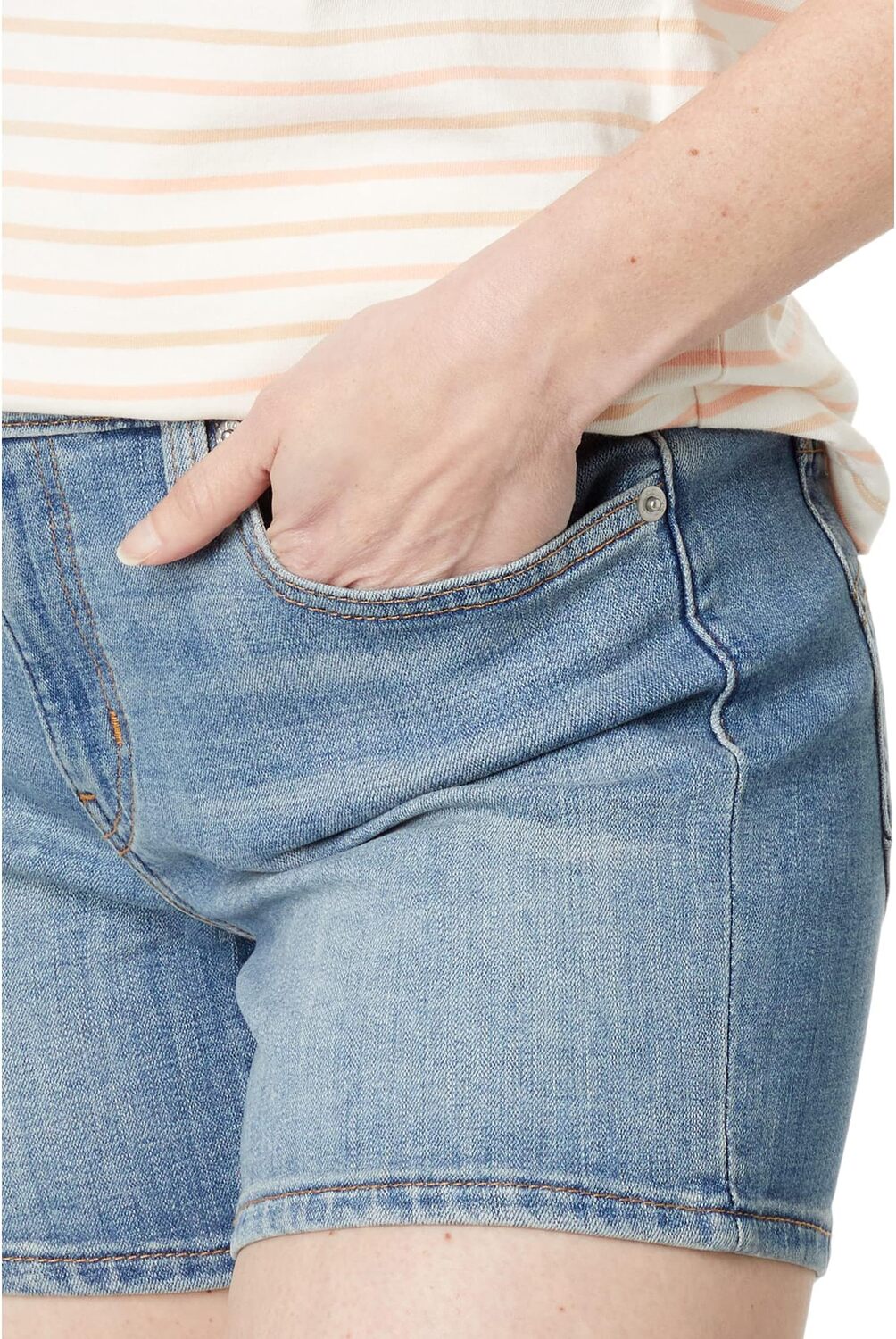 • Начните выходные правильно с женскими шортами средней длины Levi's. Шорты со средней посадкой и пятью карманами облегают бедра и ягодицы, а также имеют приталенные манжеты по низу.