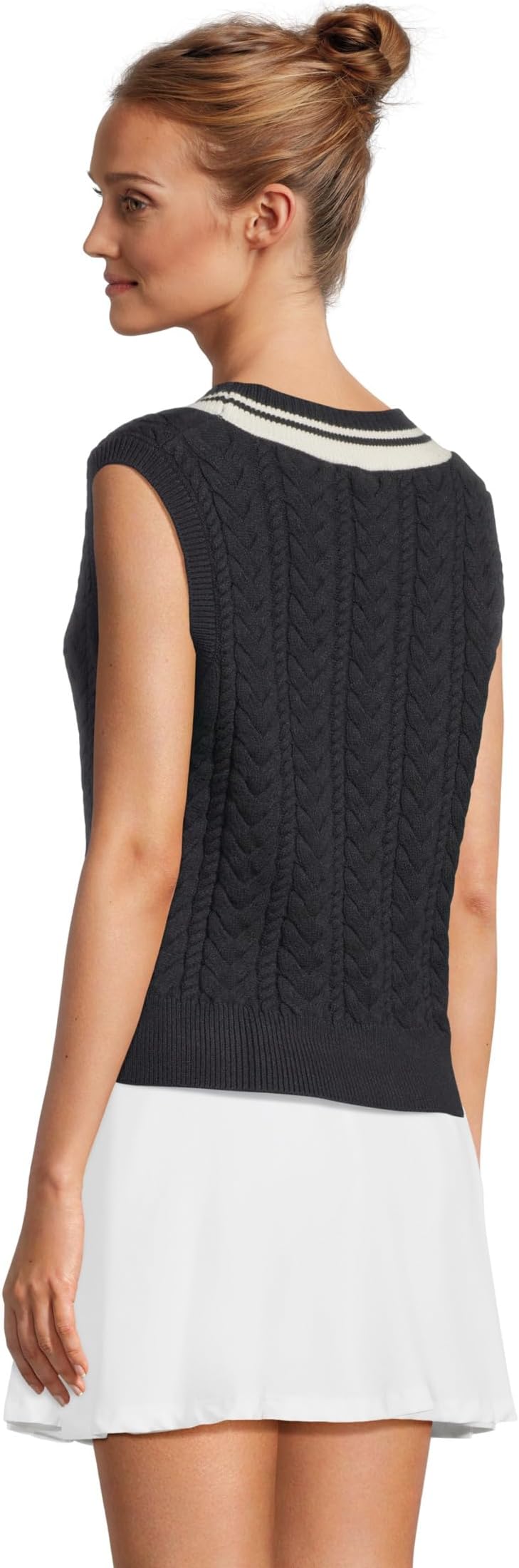 • Жилет-свитер Beyond Yoga The Cable Knit Vest идеально подходит для теннисного матча или пробежек. Этот жилет без рукавов выполнен с уникальным узором вязки, V-образным вырезом с контрастными полосками для создания лаконичного образа и длиной до талии, которая подходит к любым шортам, юбкам или брюкам. Ребристая окантовка, вырез и пройма выполнены в рубчик. В этом жилете сочетаются стиль восточного побережья и стиль западного побережья.