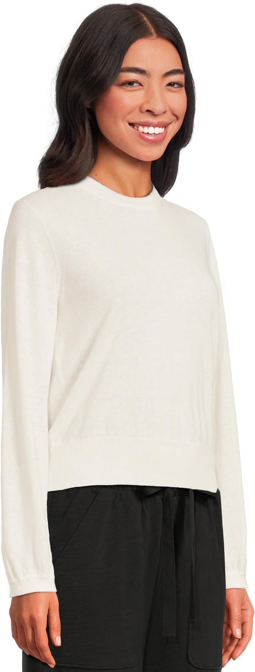 Свитер Lilla P Shirred Sleeve Crew Neck Sweater, Pearl