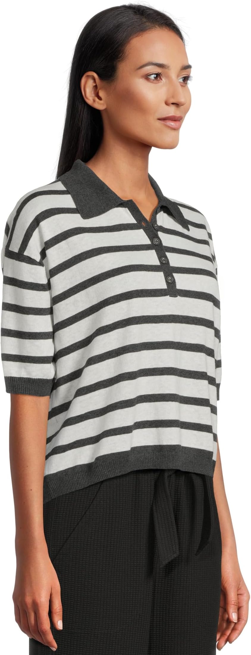 • Свитер-поло Lilla P с заниженными плечами: Тонкая хлопковая пряжа - это легкая пряжа, идеально подходящая, когда вам нужно что-то большее, чем просто футболка. Заниженные плечи, скругленный крой и свободные короткие рукава создают свободную посадку, а вырез-поло с маленькими пуговицами добавляет изящный, модный штрих. Этот свитер, доступный в однотонном или полосатом варианте, прекрасно сочетается с нашими твиловыми брюками или вашими любимыми джинсами.