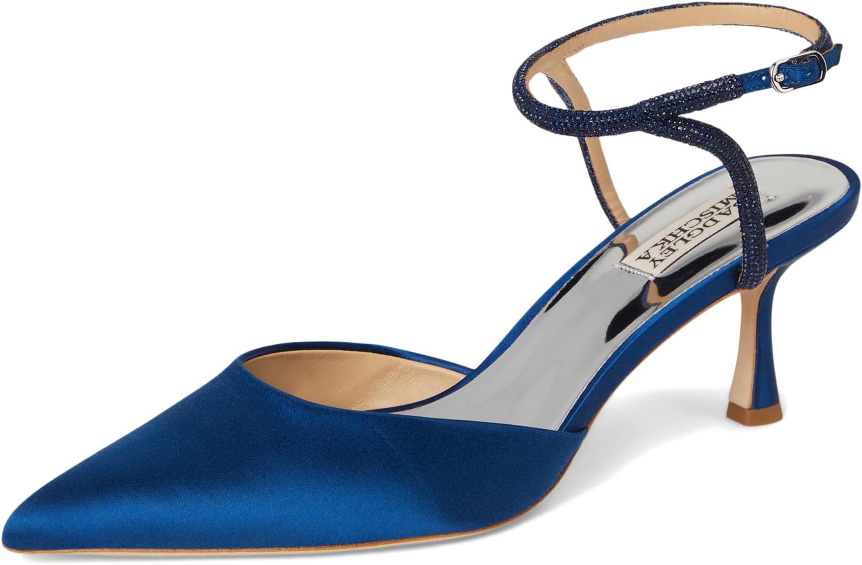 • Badgley Mischka Autumn - это туфли на невысоком каблуке с декоративным ремешком на щиколотке и регулируемой застежкой-пряжкой. Босоножки с острым носком имеют шелковый верх и дышащую кожаную подкладку для дополнительного комфорта.