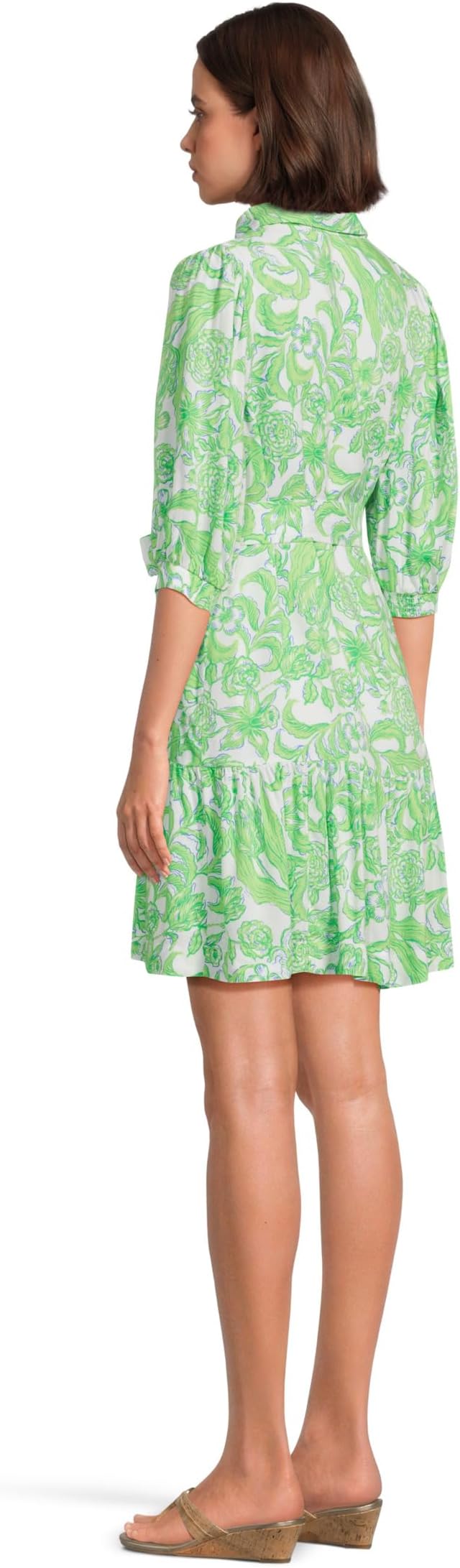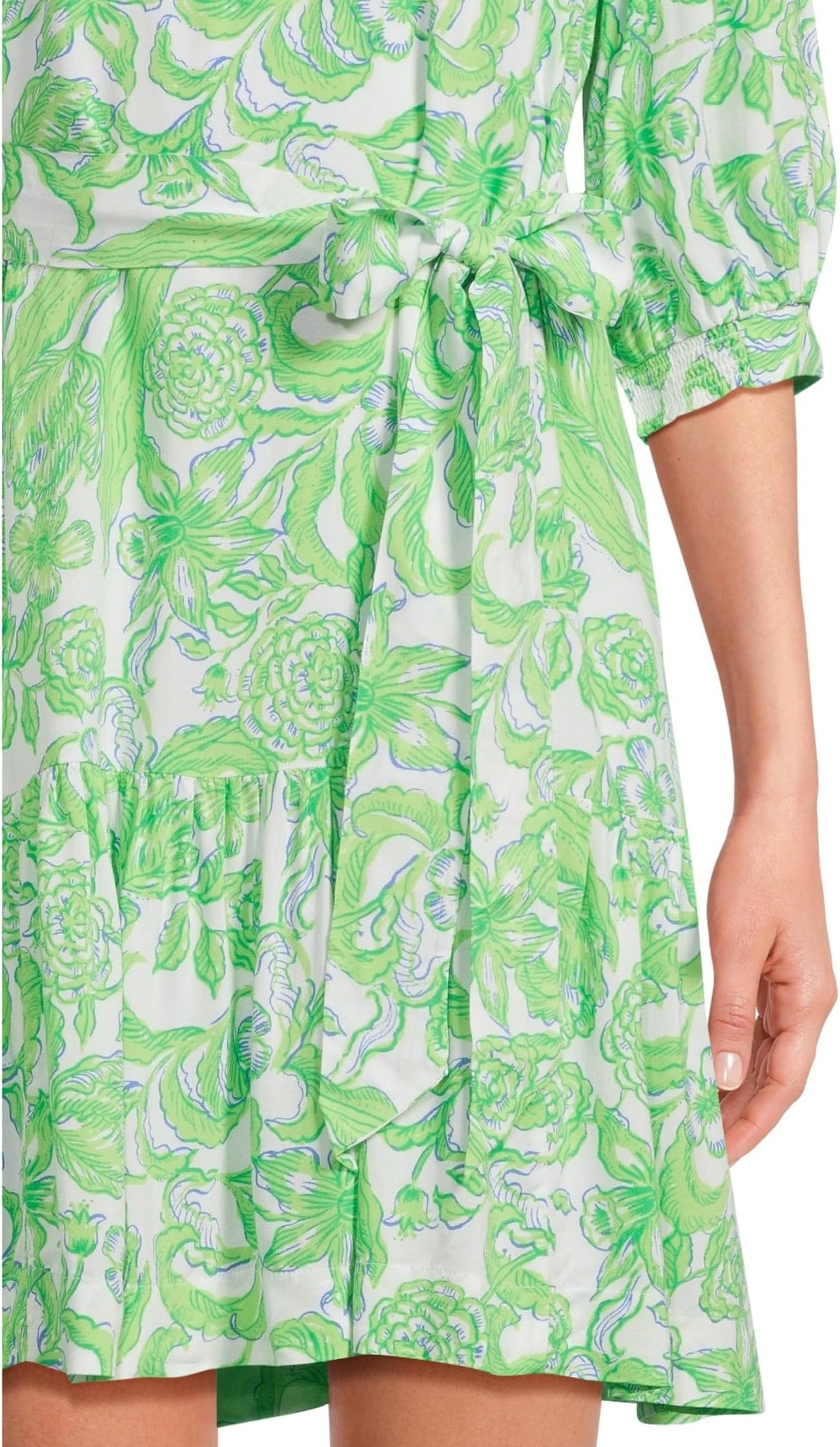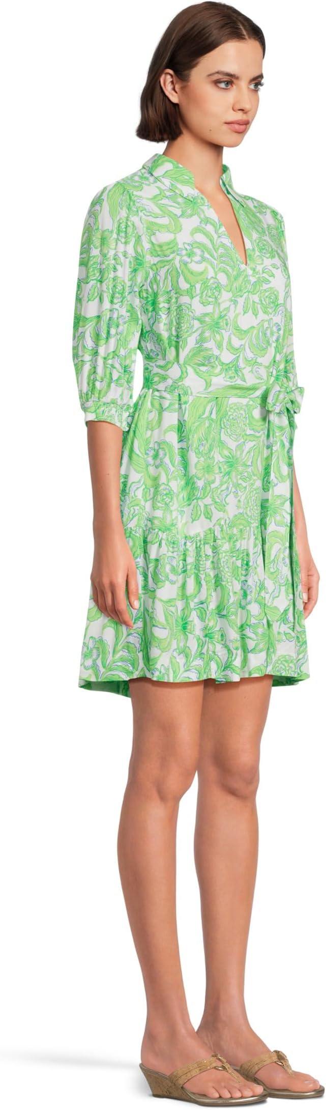 • Окутайте себя легкой изысканностью в платье Lilly Pulitzer Renelle. Отложной воротник и V-образный вырез создают элегантный, но непринужденный образ. Рукава до локтя и высокая оборка по подолу добавляют стильный акцент, а отдельный пояс позволяет регулировать посадку.