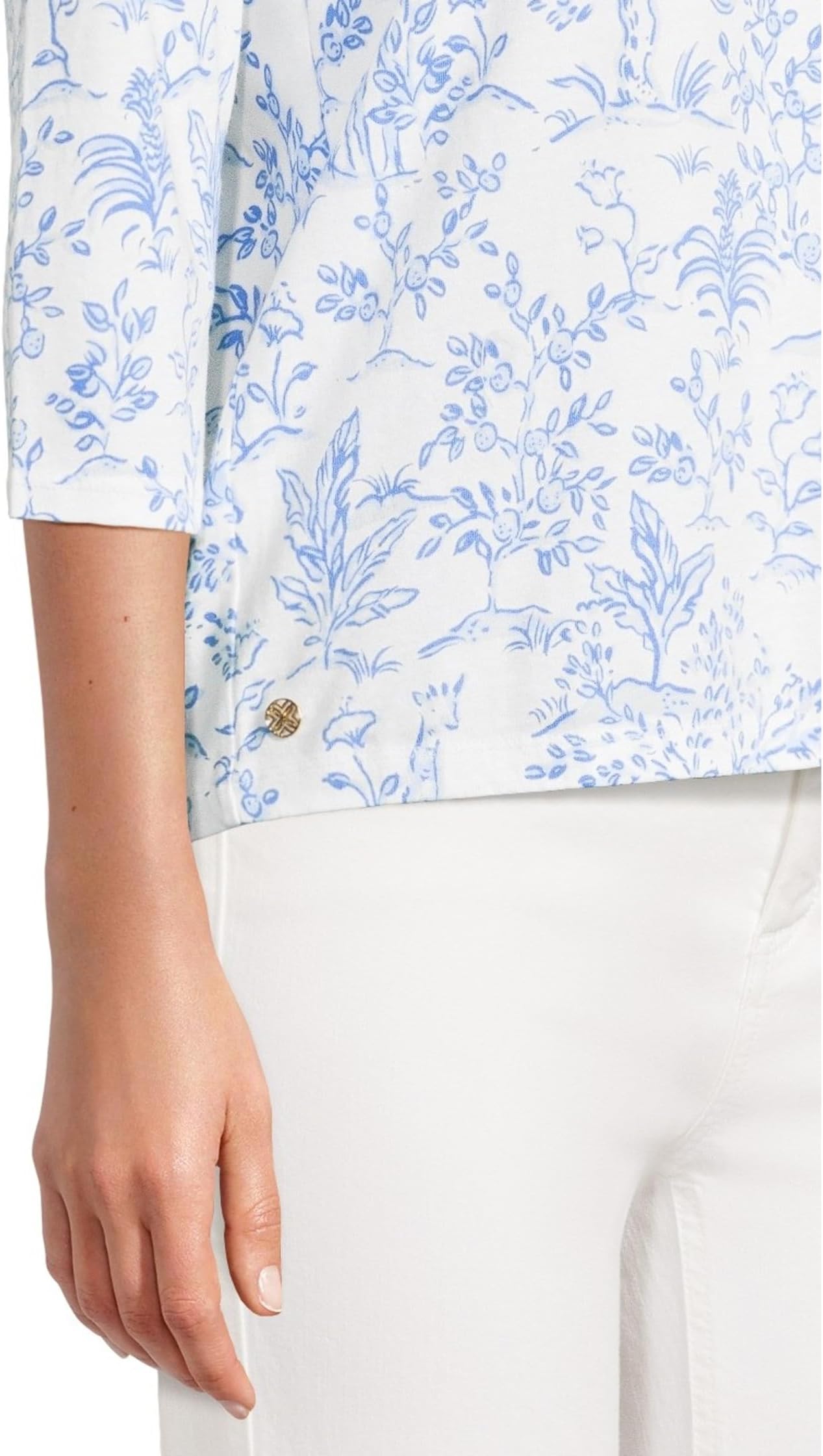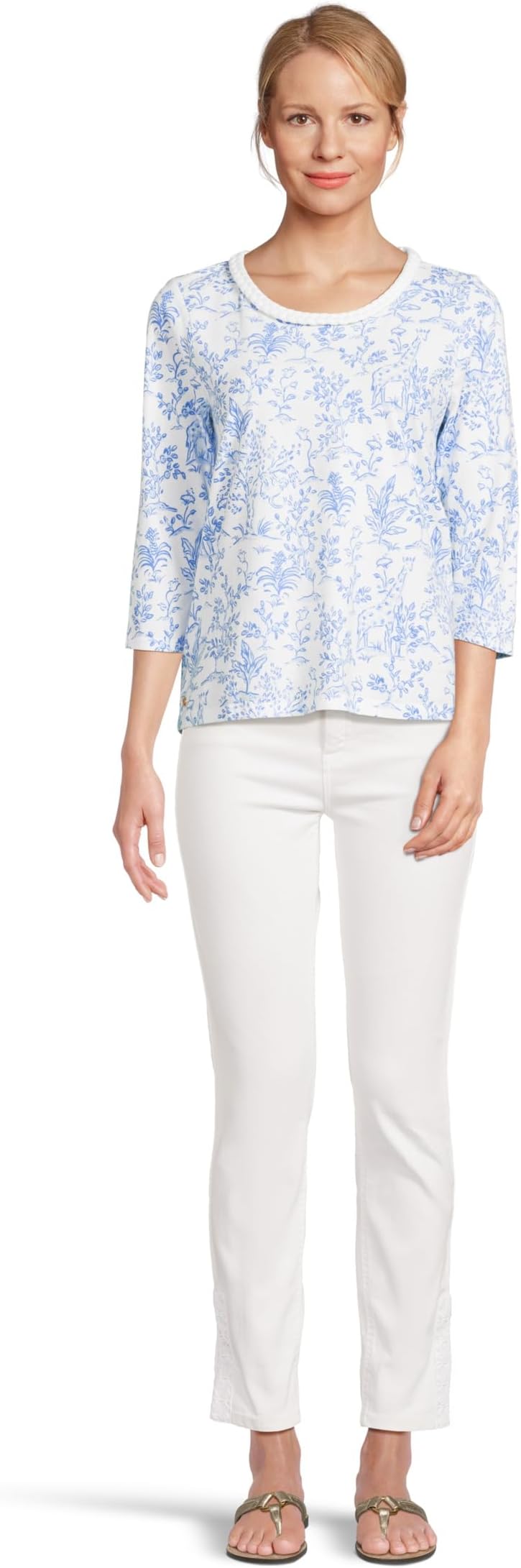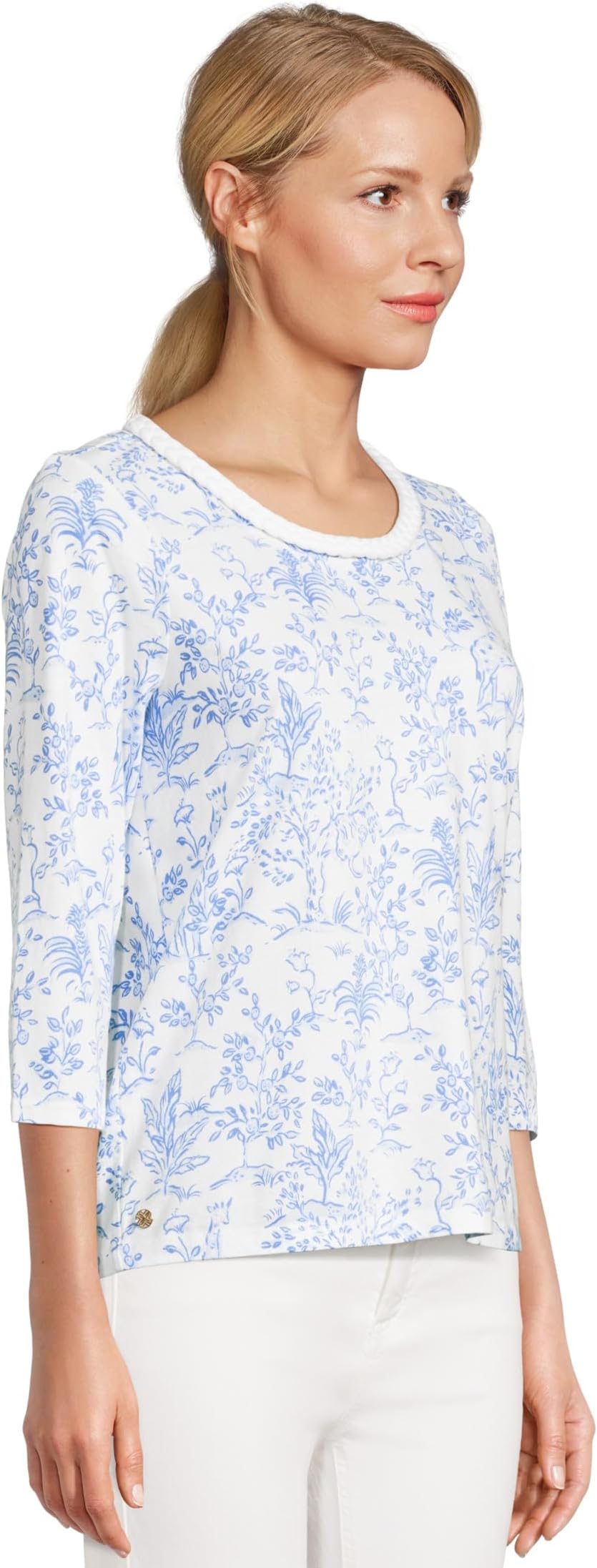 • Подчеркните свой элегантный стиль в трикотажном топе Lilly Pulitzer Paulson прямого кроя. Топ легко надевается, имеет круглый вырез горловины, рукава три четверти, фурнитуру с планками и плетеную отделку.