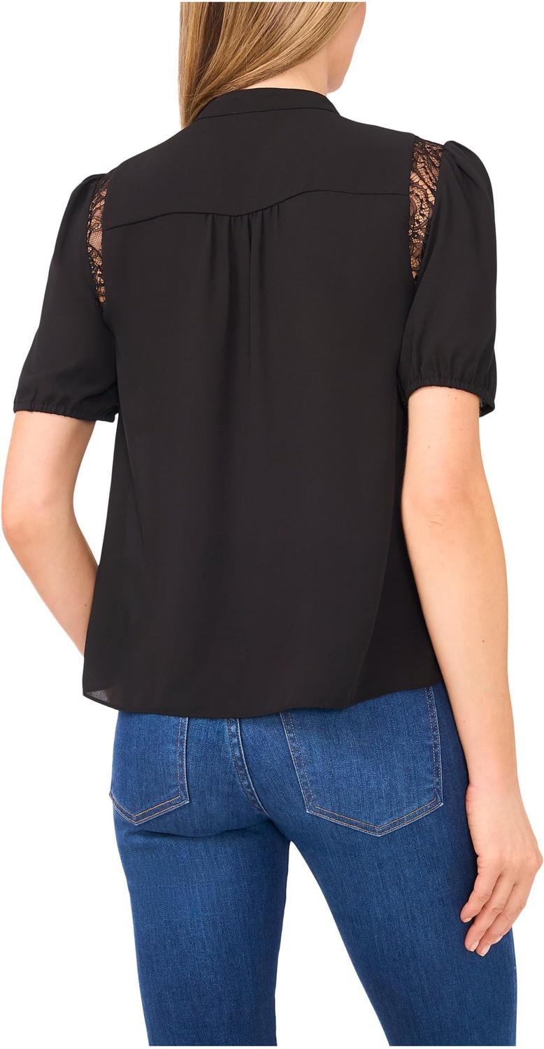 Топ CeCe Short Sleeve Button Front Lace Trim Top, Rich Black 8 713₽