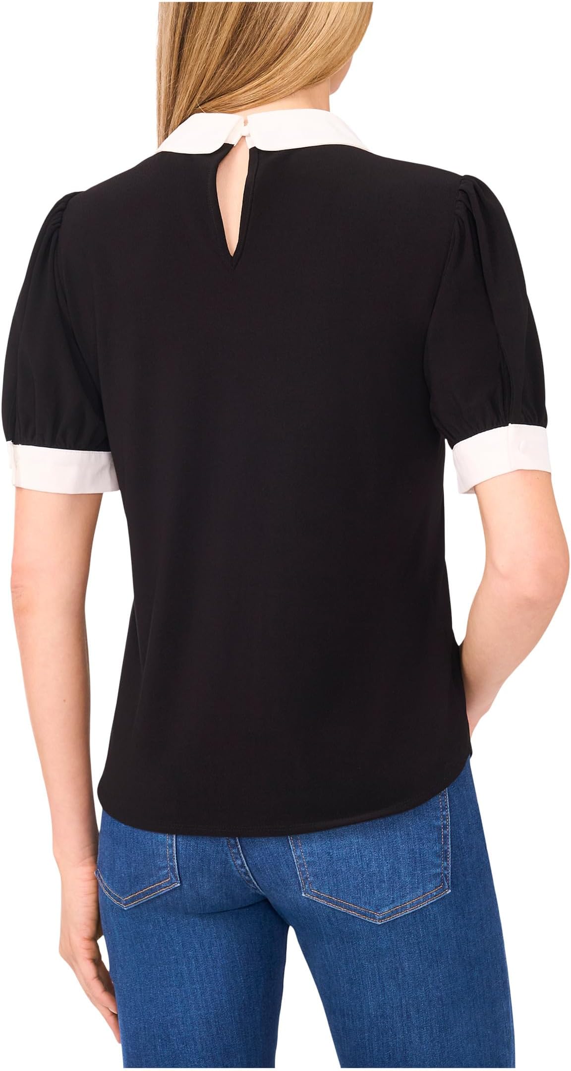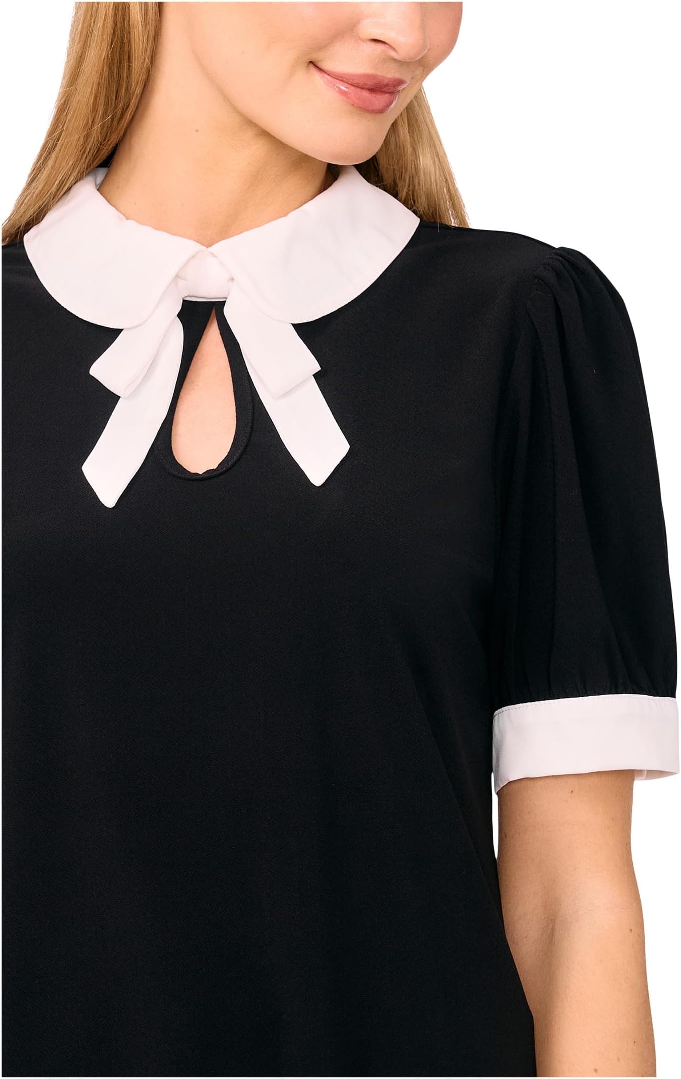 Топ CeCe Puff Short Sleeve Contrast Collar & Bow Top, Rich Black