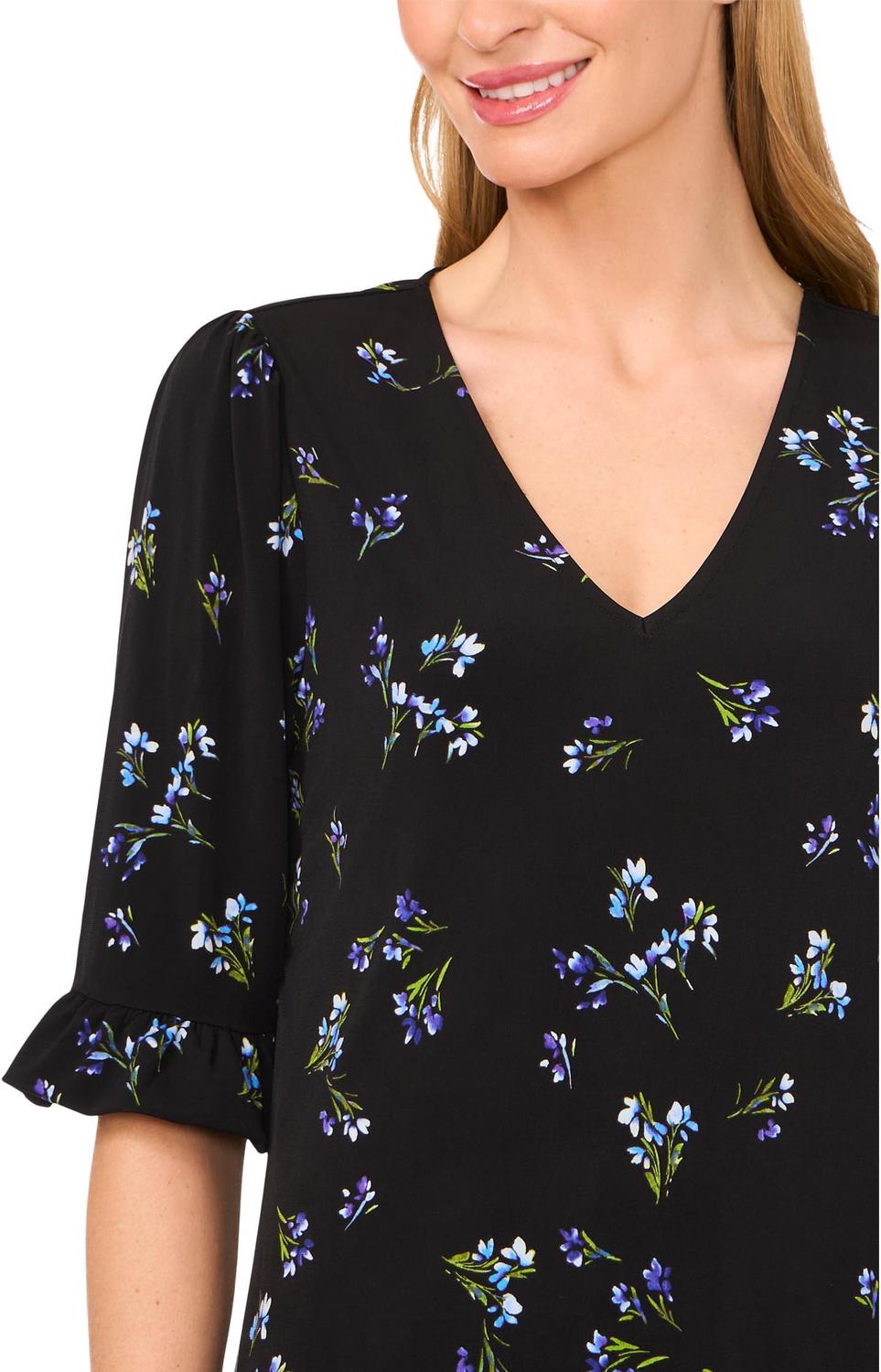 Топ CeCe V-Neck Elbow Ruffled Sleeve Knit Top, Rich Black