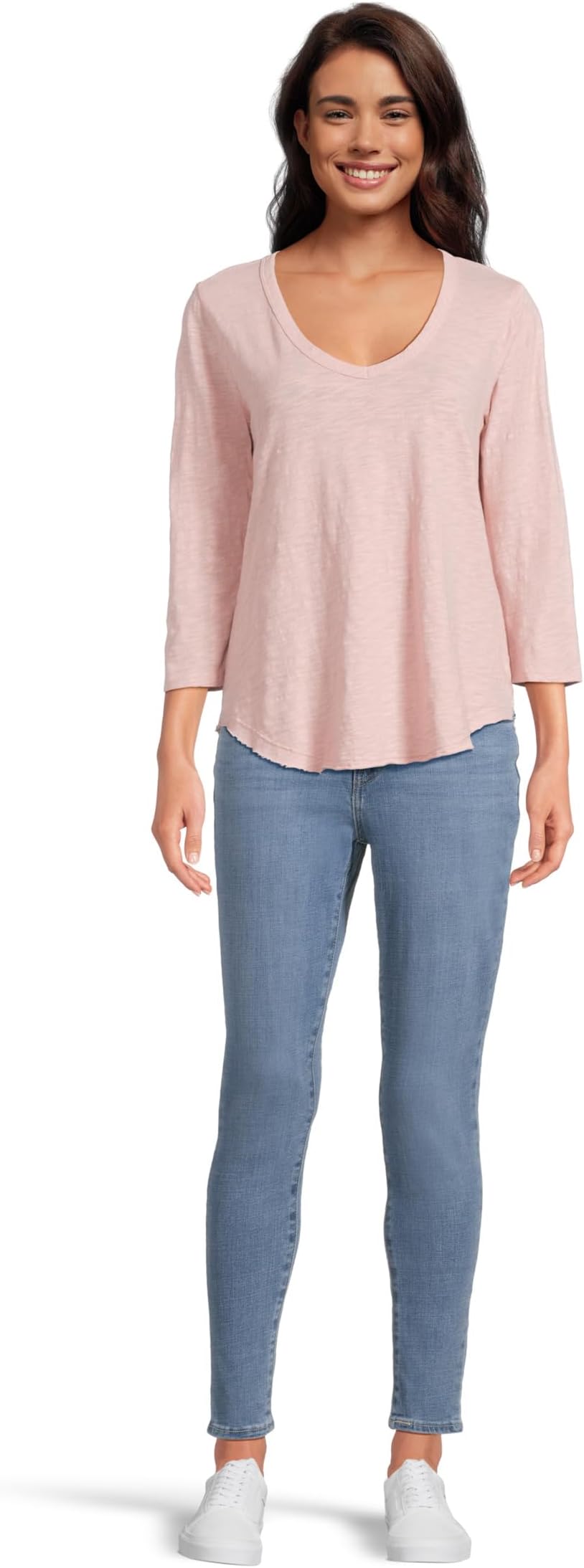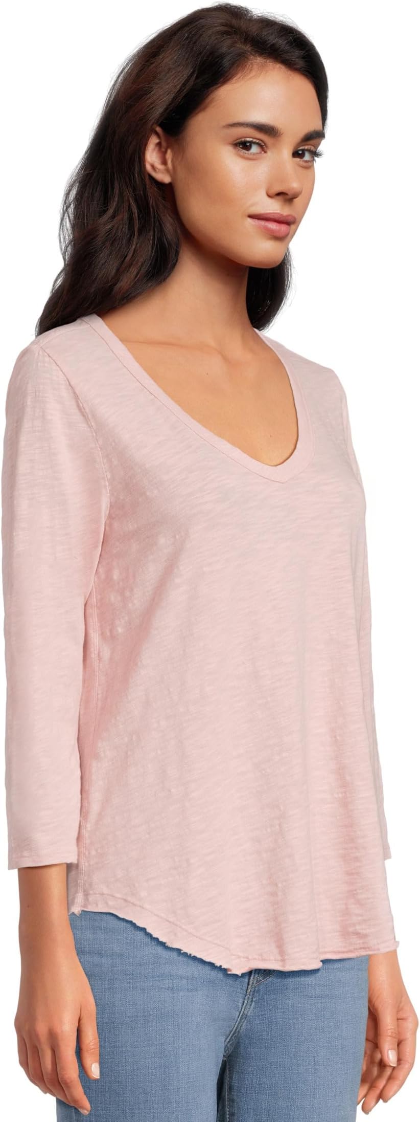 Футболка Mod-o-doc 3/4 Sleeve V-Neck Tee with Curved Hem, RosebudSee Less