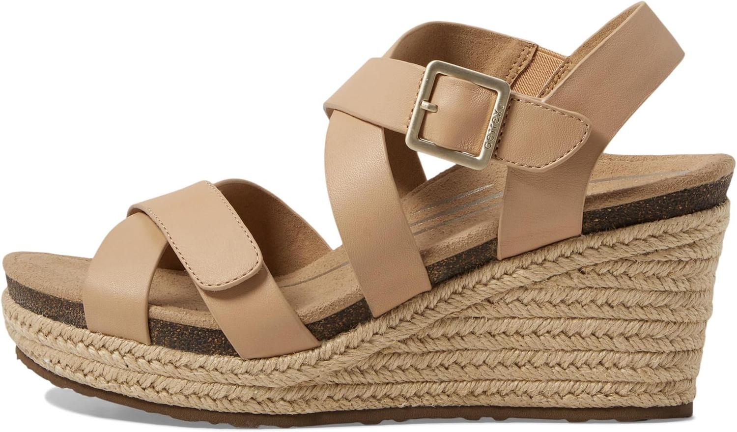 • Босоножки на танкетке Aetrex Anna оснащены ремешком на щиколотке с застежкой на липучке, открытым круглым носком и фирменной символикой на стельке. Верх из кожи и замшевая стелька.