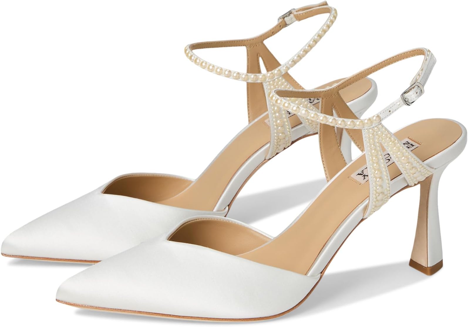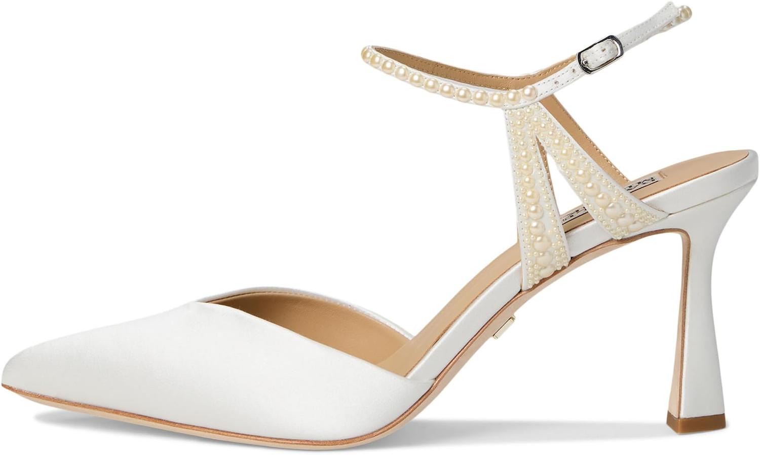 • Badgley Mischka Destinee - это стильные туфли-лодочки с жемчужной отделкой на ремешке вокруг щиколотки и регулируемой пряжкой. Туфли с острым носком, расклешенным каблуком и элегантным низким силуэтом.