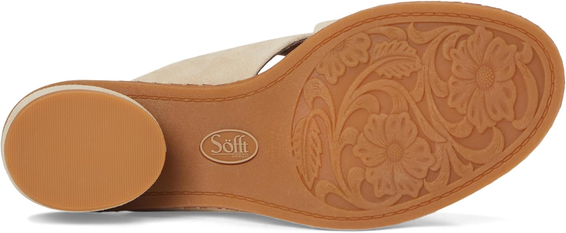 • Сандалии Sofft Crystal отличаются стильным верхом с перекрестными ремешками и X-образным ремешком, обеспечивающим свободную посадку без застежки. Отделка швом придает обуви вид ручной работы, а блочный каблук и закругленный открытый носок обеспечивают сбалансированную поддержку. Благодаря гибкой резиновой подошве эти сандалии идеально подходят для элегантного и комфортного ношения в течение всего дня.