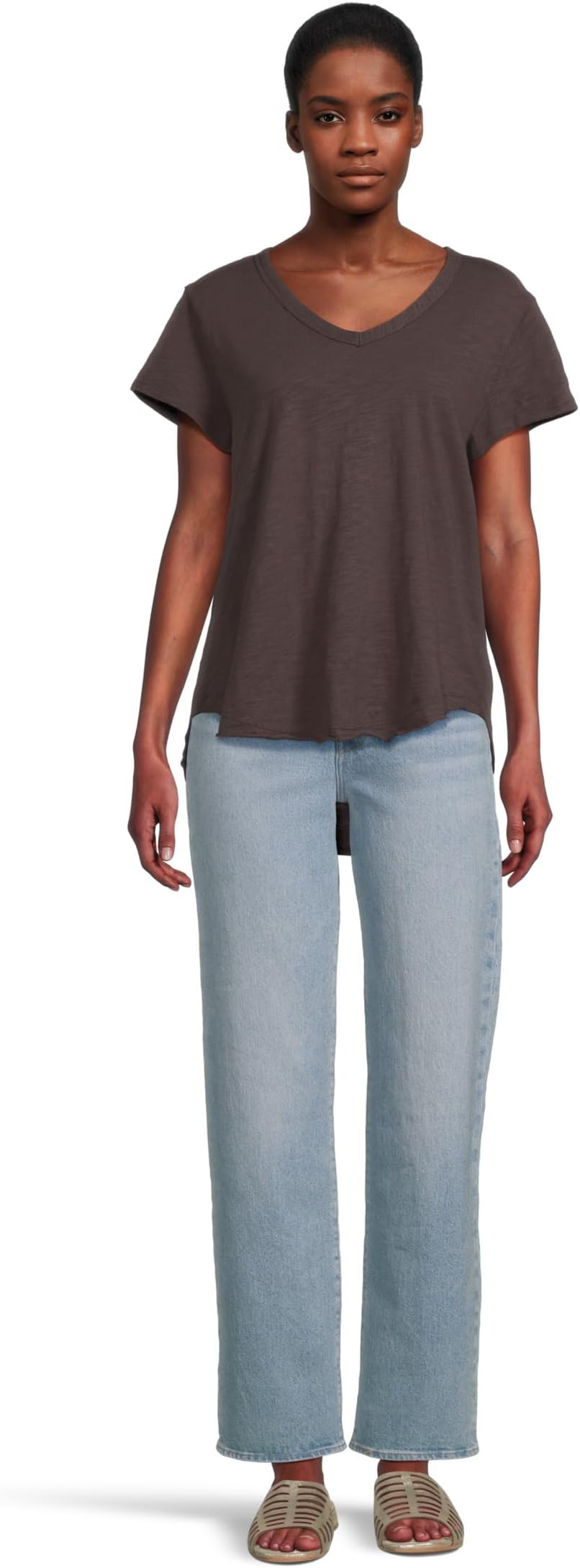 Футболка Mod-o-doc V-neck Short Sleeve Tee With Curved Hem, Washed Ebony