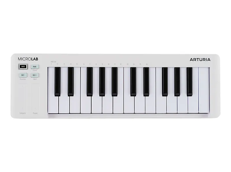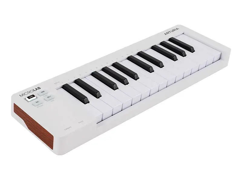 MicroLab Mk3 - это компактный MIDI-контроллер с питанием через USB, оснащенный отзывчивыми клавишами и интеллектуальными функциями для мобильного создания музыки.
