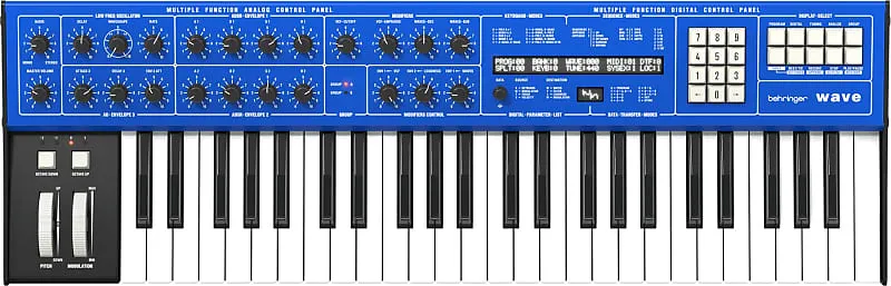49-клавишный гибридный вейттейбл-синтезатор с 8-голосной полифонией, аналоговыми VCF/VCA, двойными ADSR-огибающими, 30 встроенными вейттейблами, LFO и 200 пользовательскими пресетами.