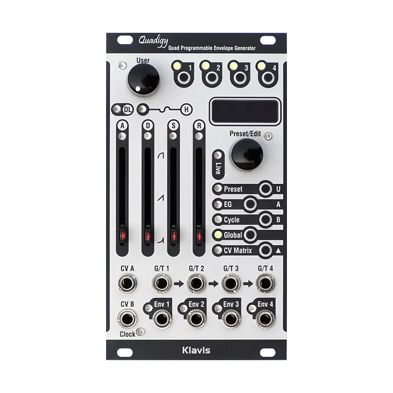 Quadigy - это сложный генератор огибающих, ориентированный на живое исполнение.Цель состоит в том, чтобы пользователь мог настраивать богатые, интерактивные и динамично развивающиеся огибающие без риска разрушить тонкий и замысловатый патч во время выступления.Это достигается за счет двух основных режимов: один обеспечивает полный контроль, а режим Live позволяет менять только те параметры, которые имеют смысл использовать на сцене.