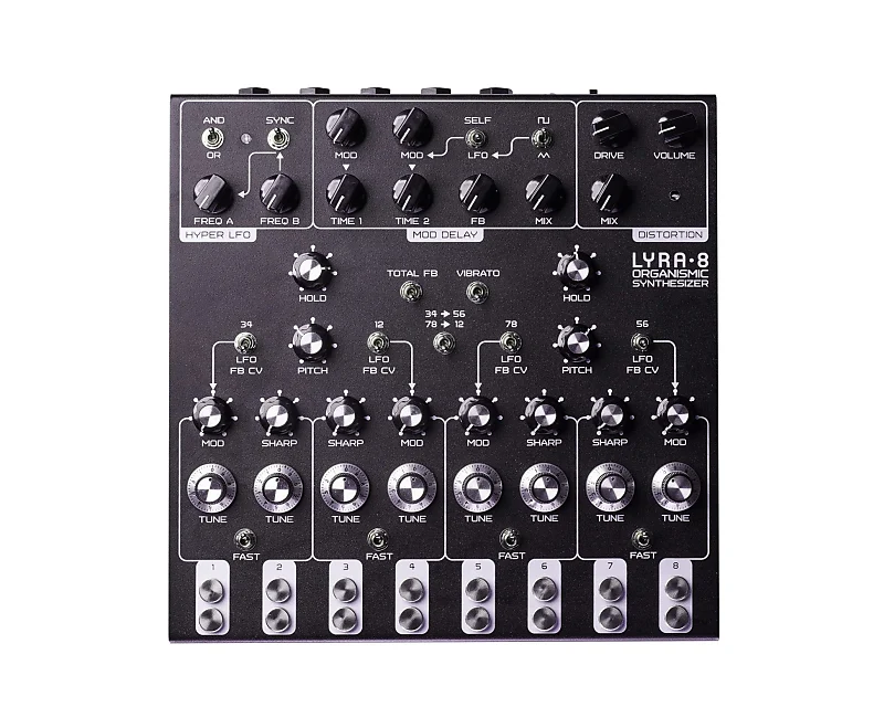 8-голосный синтезатор, нарушающий все правила, использующий генераторы тонов, похожие на те, что применялись в старых органах.Каждый голос создает сырые волны, которые могут быть изменены от треугольной до квадратной формы.Действуя парами, они служат носителями и модуляторами в поистине впечатляющей версии крутилочной, интерактивной FM-синтезии.