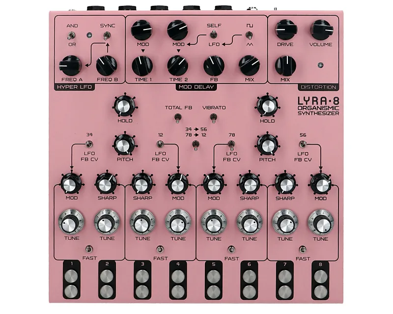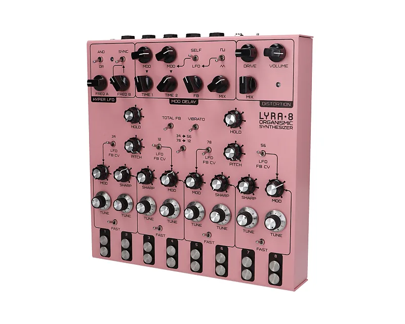8-голосный синтезатор, нарушающий все правила, использующий генераторы тонов, похожие на те, что применялись в старых органах.Каждый голос создает сырые волны, которые могут быть изменены от треугольной до квадратной формы.Действуя парами, они служат носителями и модуляторами в поистине впечатляющей версии крутилочной, интерактивной FM-синтезии.