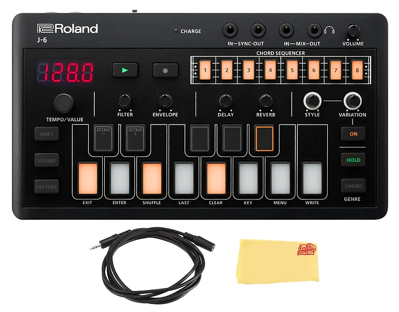 Roland Aira Compact J-6 Chord Synthesizer Bundle с аудиокабелем и полировочной тканью Austin Bazaar