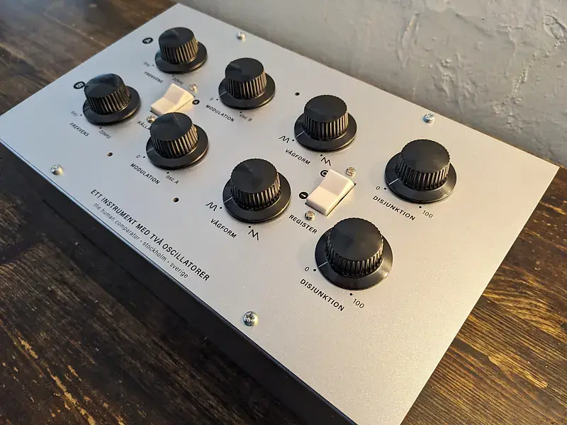 Каждый осциллятор имеет регулировку формы сигнала от синусоиды до пилы, с отдельными ручками частоты и модуляции.Выход можно переключать между осциллятором А и осцилляторами А и B одновременно, в то время как два регулятора и переключатель на правой стороне управляют Wrongler.