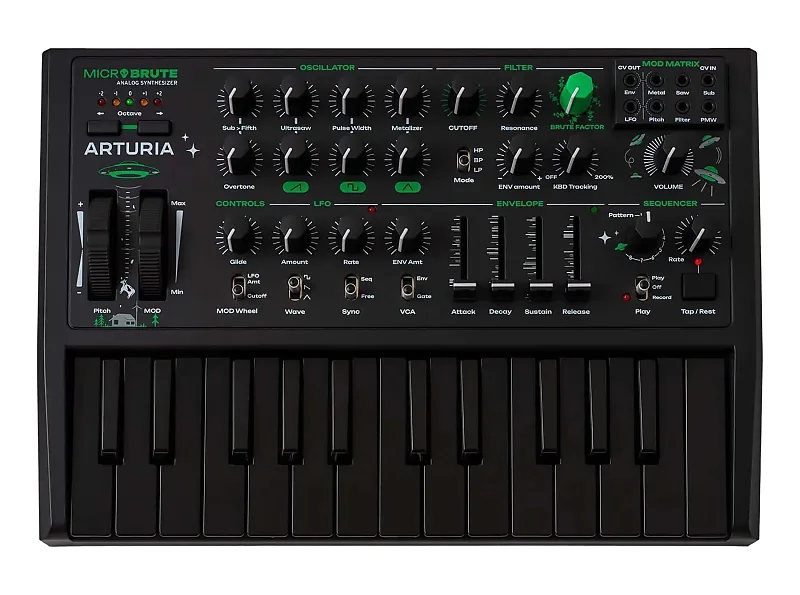 Дань аналоговому возрождению, которому помогла Arturia, MicroBrute UFO возвращает классический успех с дерзким новым обликом.Приземляясь на Земле в очень ограниченном выпуске, он готов мгновенно разлететься с полок!MicroBrute UFO предлагает чистую аналоговую мощь с внеземным оттенком.Оснащен культовым фильтром Steiner-Parker, уникальным осциллятором, универсальным секвенсером и настраиваемой матрицей модуляции, откройте для себя тот же массивный грубый звук, представленный в космическом черном цвете с марсианско-зеленой отделкой.Компактный, смелый и готовый исследовать аналоги из других миров.
