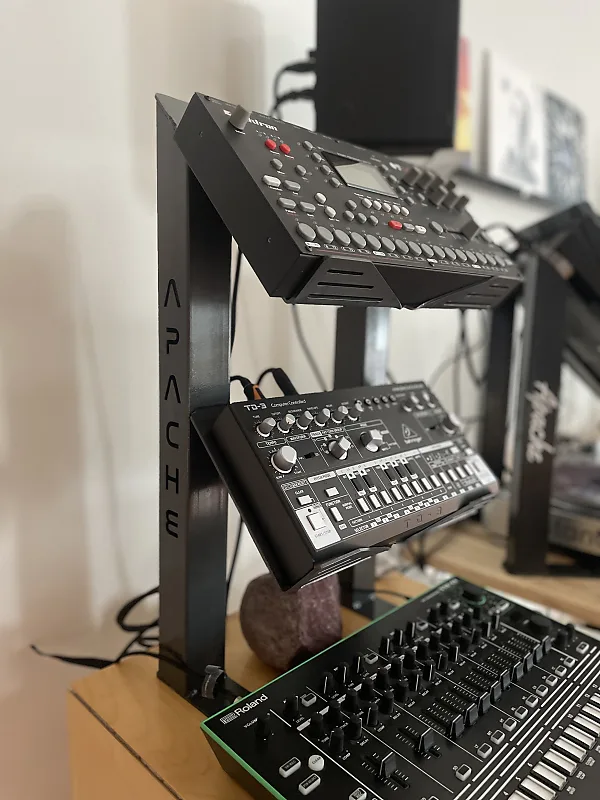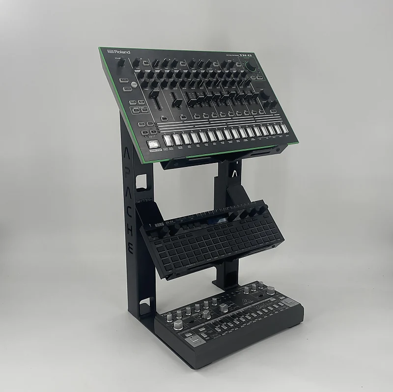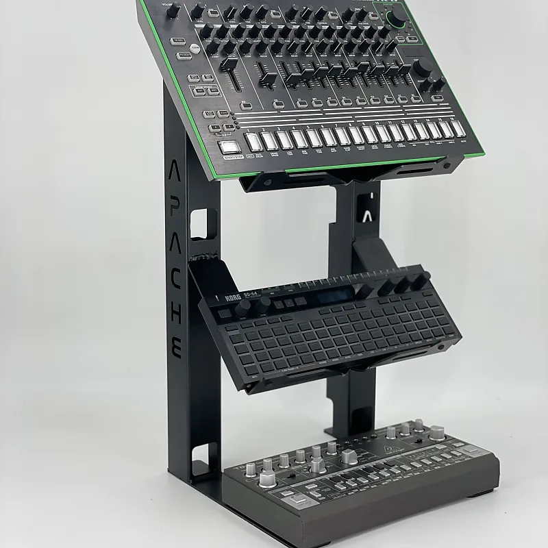 Стойка Apache Duplex эффективно размещает три устройства на одной основе.Внутренняя прокладка кабелей обеспечивает минималистичный интегрированный вид.Регулируемые изоакустические резиновые буферы защищают инструменты, предотвращая металлический контакт с подставкой.