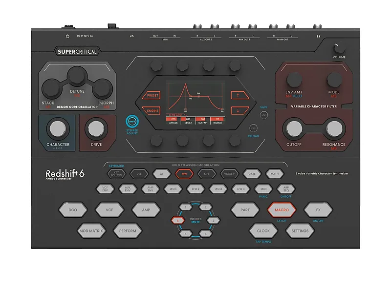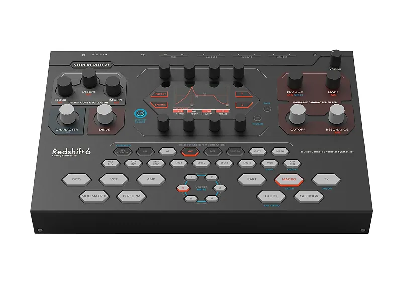 Redshift 6 объединяет технологии предыдущих продуктов компании, таких как Demon Core Oscillator и Neutron Flux Filter.Каждый из шести голосов оснащен DCO с аналоговыми волновыми формами, генерируемыми под цифровым управлением.Ядро фильтра представляет собой аналоговый 4-полюсный фильтр состояния, также управляемый цифровым способом, который может имитировать почти любой классический винтажный синтезаторный фильтр и даже больше.Помимо осцилляторов и фильтров, Redshift 6 обладает всеми функциями, ожидаемыми от современного синтезатора - множеством модуляторов, гибкой маршрутизацией голосов, многотембровостью, поддержкой MPE и DSP-эффектами.