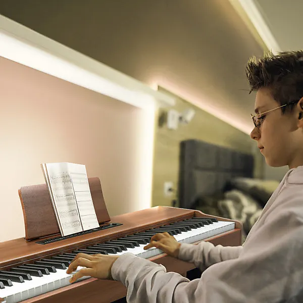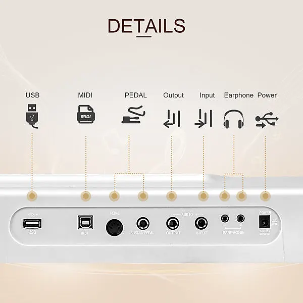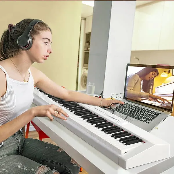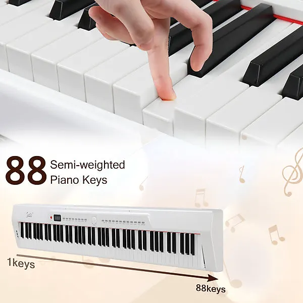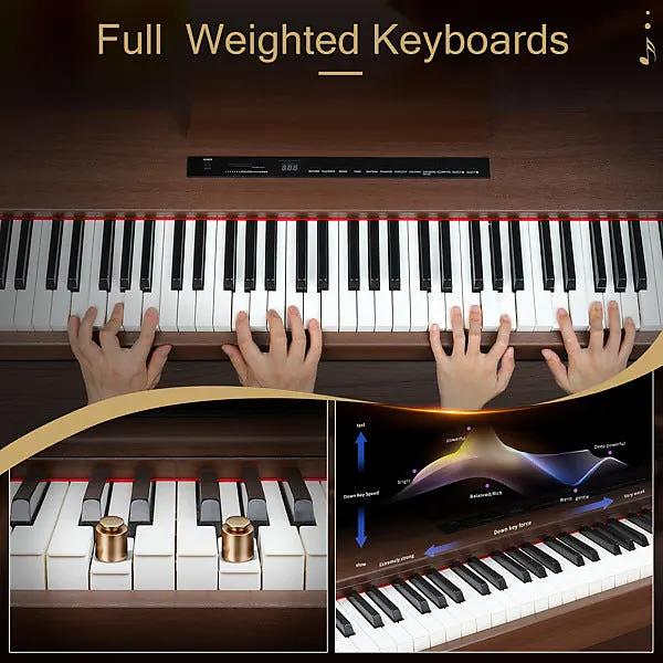 Цифровое пианино Glarry с 88 клавишами и полным размером полу-взвешенных клавиш использует высококачественный фирменный источник звука Dream Sound, который обеспечивает наиболее впечатляющее звучание.Наше 88-клавишное пианино оснащено двумя видами Bluetooth: Audio Bluetooth и MIDI Bluetooth.Можно подключить компьютер или планшет с помощью USB-кабеля для мультимедийного взаимодействия.После включения пианино Bluetooth включается автоматически.Мобильный телефон может найти сигнал MIDI Bluetooth этого пианино.После подключения программное обеспечение для игры на телефоне может обеспечить беспроводное соединение с пианино.Также может использоваться в качестве подарка для родственников и друзей или как реквизит для театральных выступлений.
