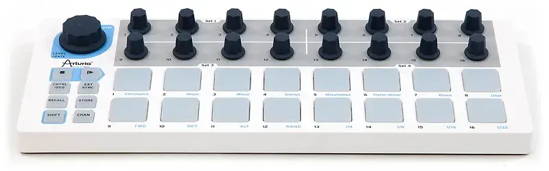 BeatStep также является 16-шаговым аналоговым секвенсером, и он словно сила природы, когда речь идет о создании интересных музыкальных фраз для аналоговых синтезаторов, MIDI-барабанных машин, клавишных инструментов и DAW.