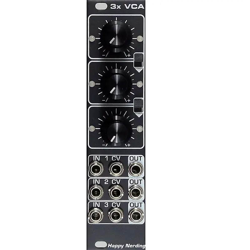 3xVCA предлагает три высококлассных усилительных схемы с линейной характеристикой.Благодаря совместимости с AC / DC, очень низкому уровню шума и практически отсутствию искажений, модуль является отличным партнером не только для управляющих сигналов, но и для аудиоматериала.Помимо входа и выхода сигнала, каждый VCA имеет свой собственный вход CV.Двойные потенциометры регулируют уровни и двуполярные значения ослабления CV всех усилителей.Используя эти довольно необычные, но очень практичные компоненты, удалось оснастить 3x VCA передней панелью шириной всего 6 HP.Переключатели позволяют пользователю подавать результат одного усилителя на выход следующего, чтобы получить миксы 1+2, 2+3 и 1+2+3.Двухцветные светодиоды визуализируют сигналы CV и выходные сигналы.