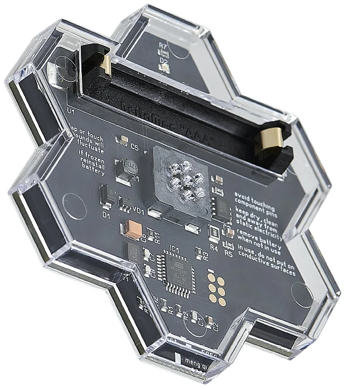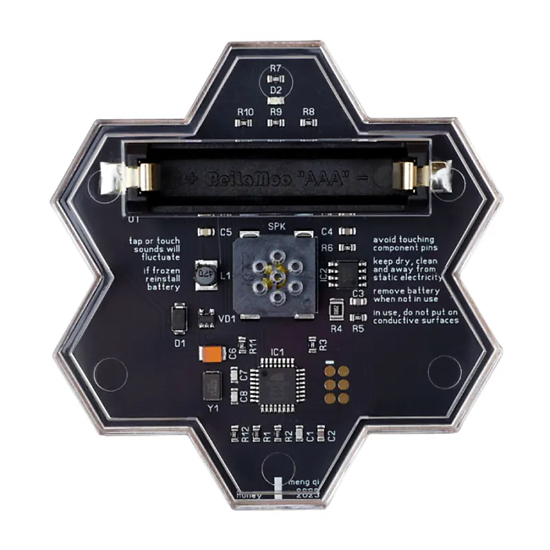 Honey - это музыкальный инструмент для шума на основе прикосновений размером с ладонь, работающий по принципу Bytebeat.Его питает одна батарейка AAA, а звук воспроизводится через встроенный динамик.В нем нет аудиоразъема.Он создает динамичные звуки, управляя переменными и математическими операциями через касание.